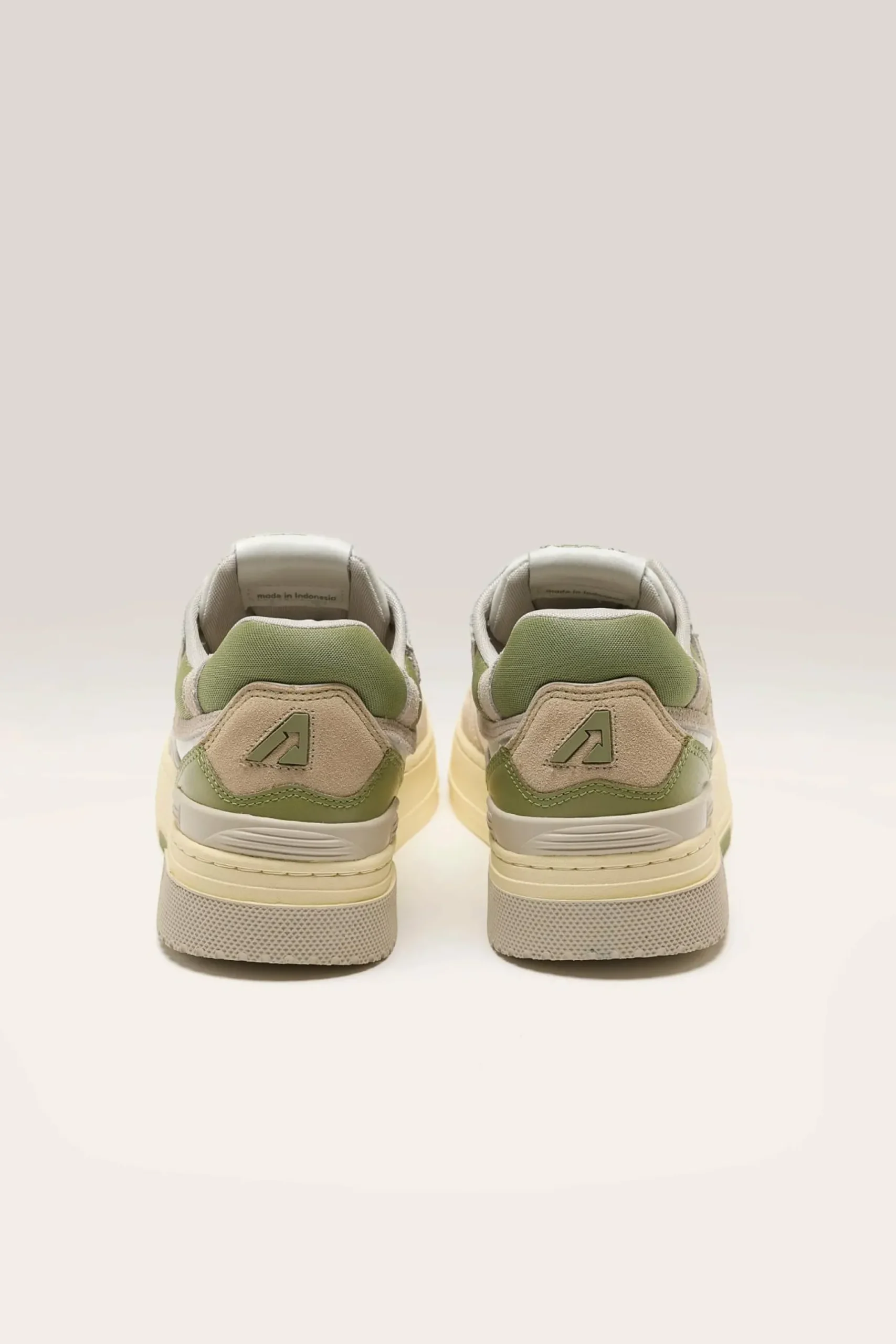 De Autry CLC Low zijn op basketbal geïnspireerde sneakers met een lederen en suède bovenwerk, een gewatteerde kraag van mesh en een verhoogde rubberen zool.