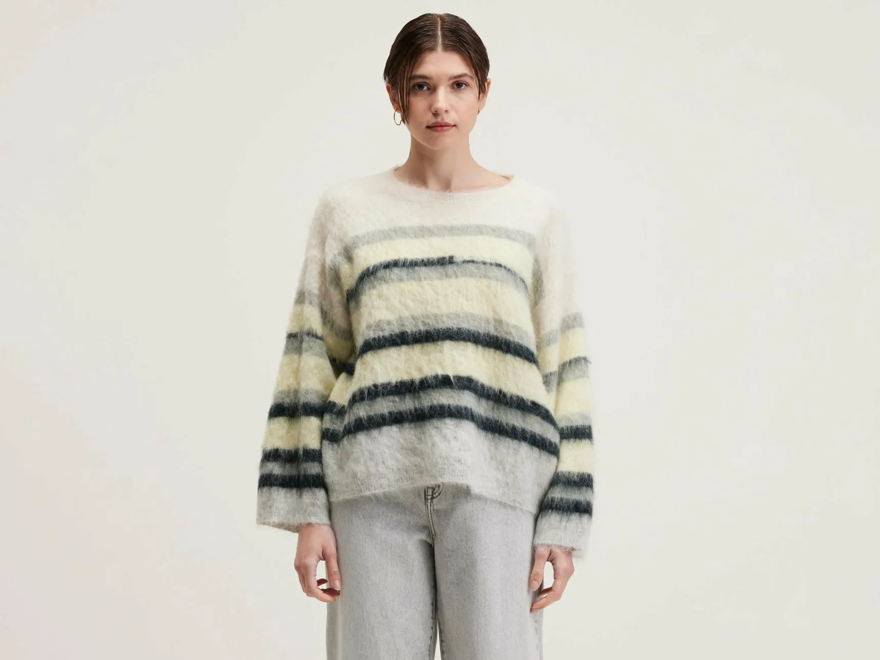 Oversizede trui met onregelmatige strepen, in wolmix.