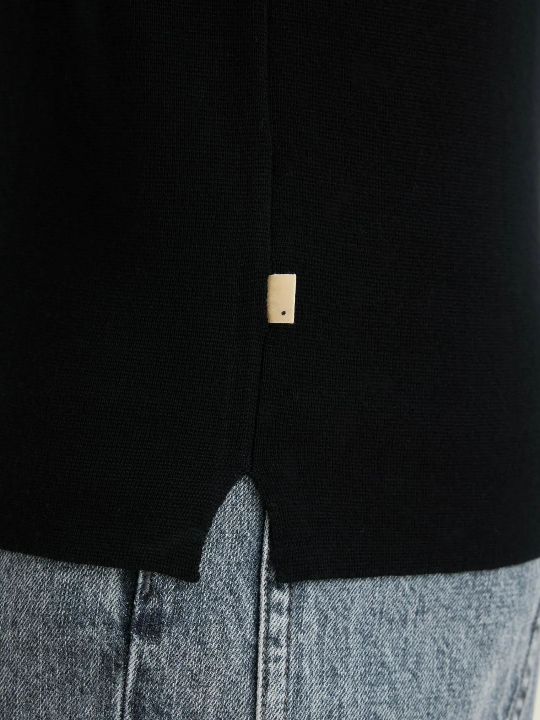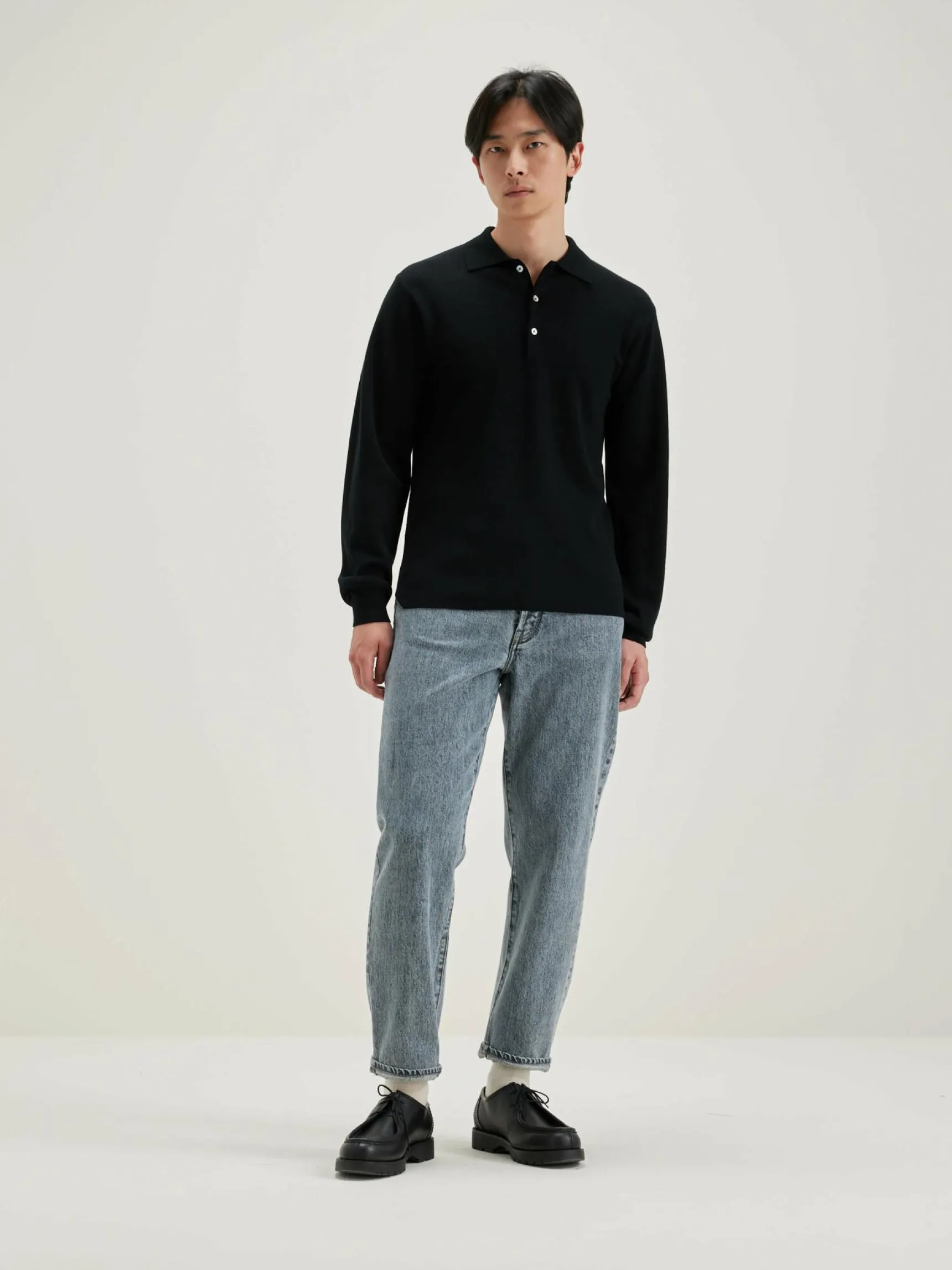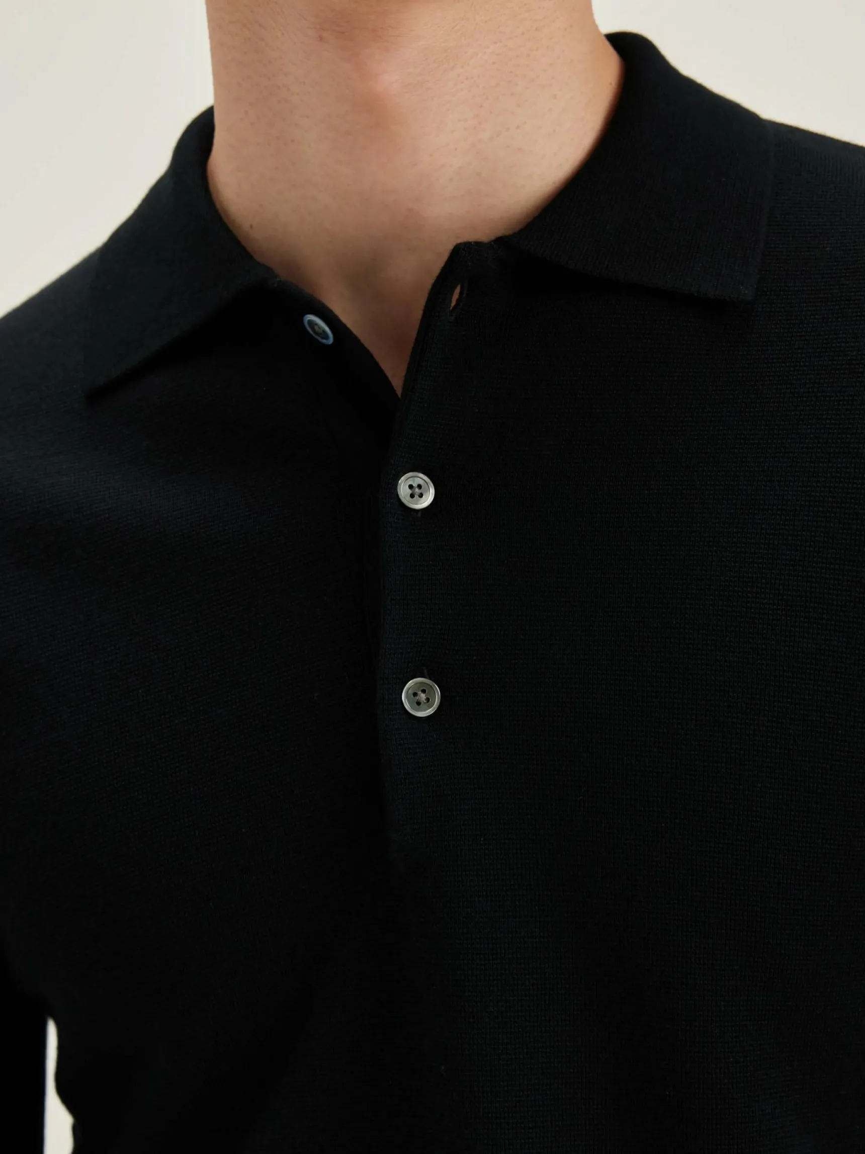 Klassieke, zwartblauwe sweater in polostijl, van extrafijne merinowol.