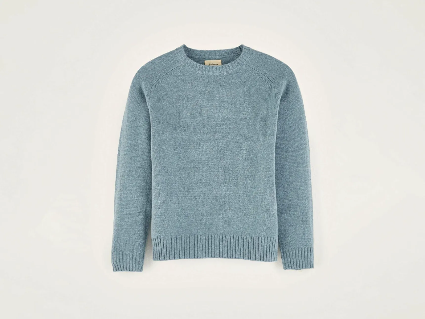Comfortabele, klassieke sweater met ronde hals, van blauwe merinowol.