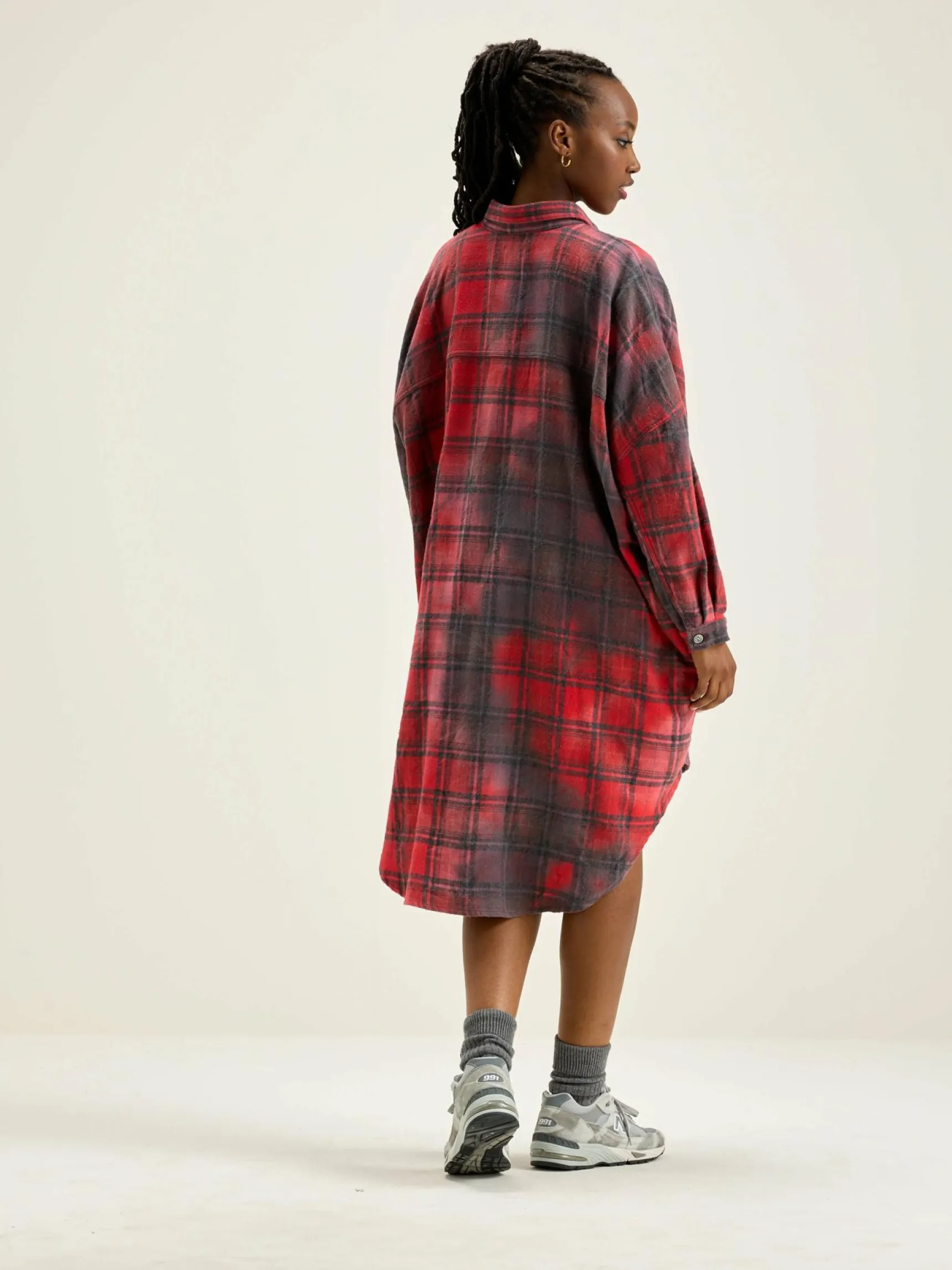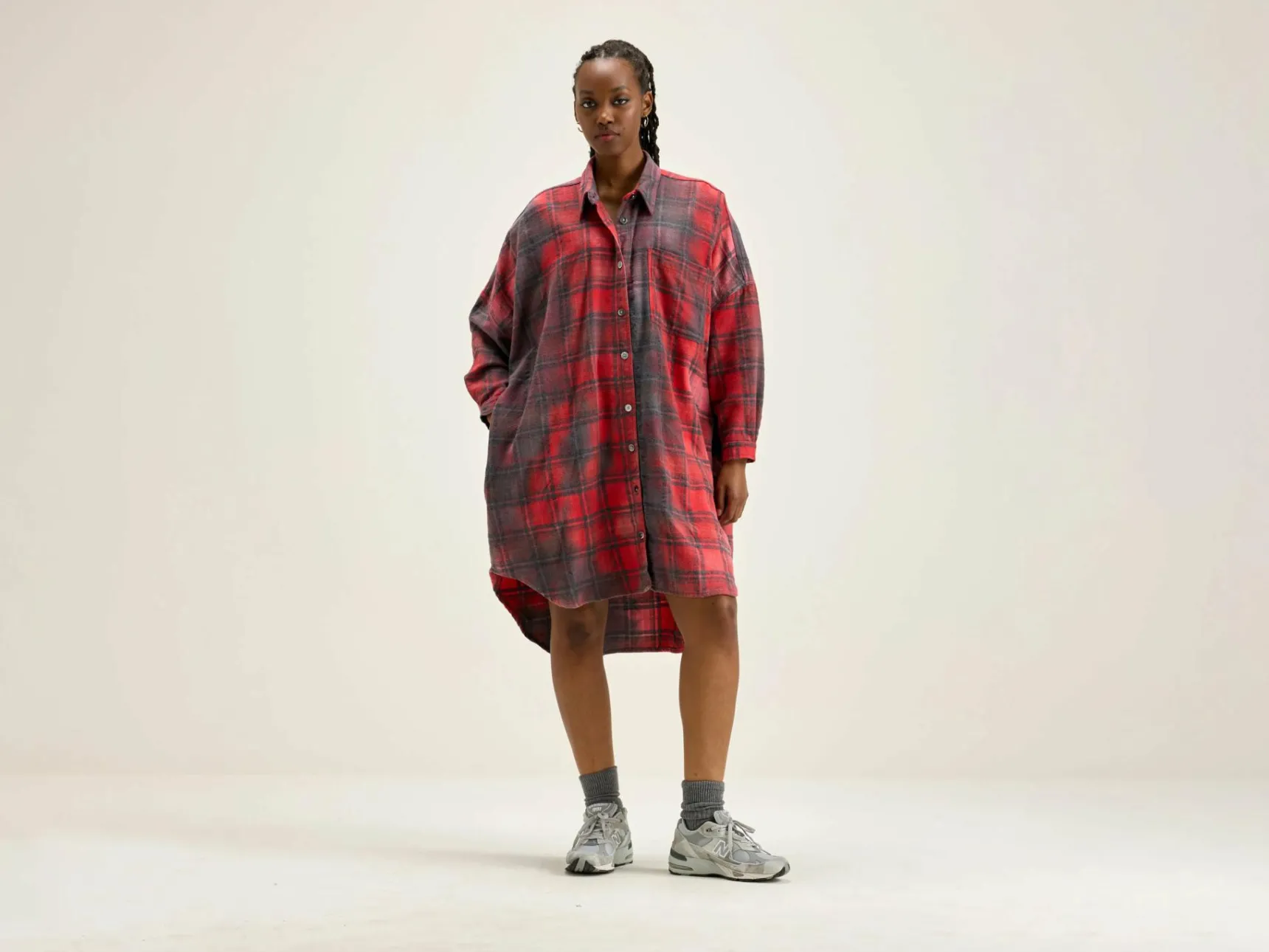 Oversizede hemdjurk van geborsteld katoen, met rode en zwarte ruiten en een gebleekte look.
