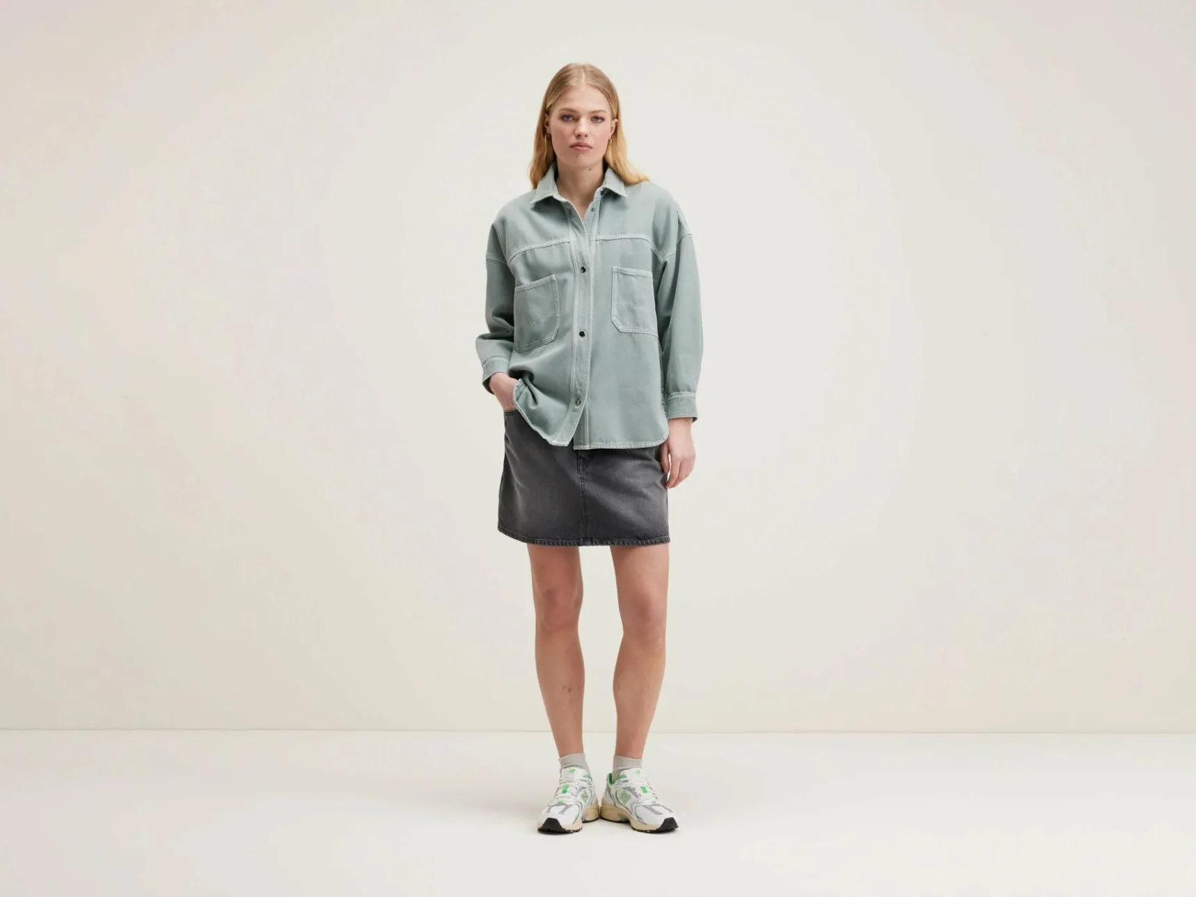 Aquagroen overshirt met workwear-look van katoenkeper.