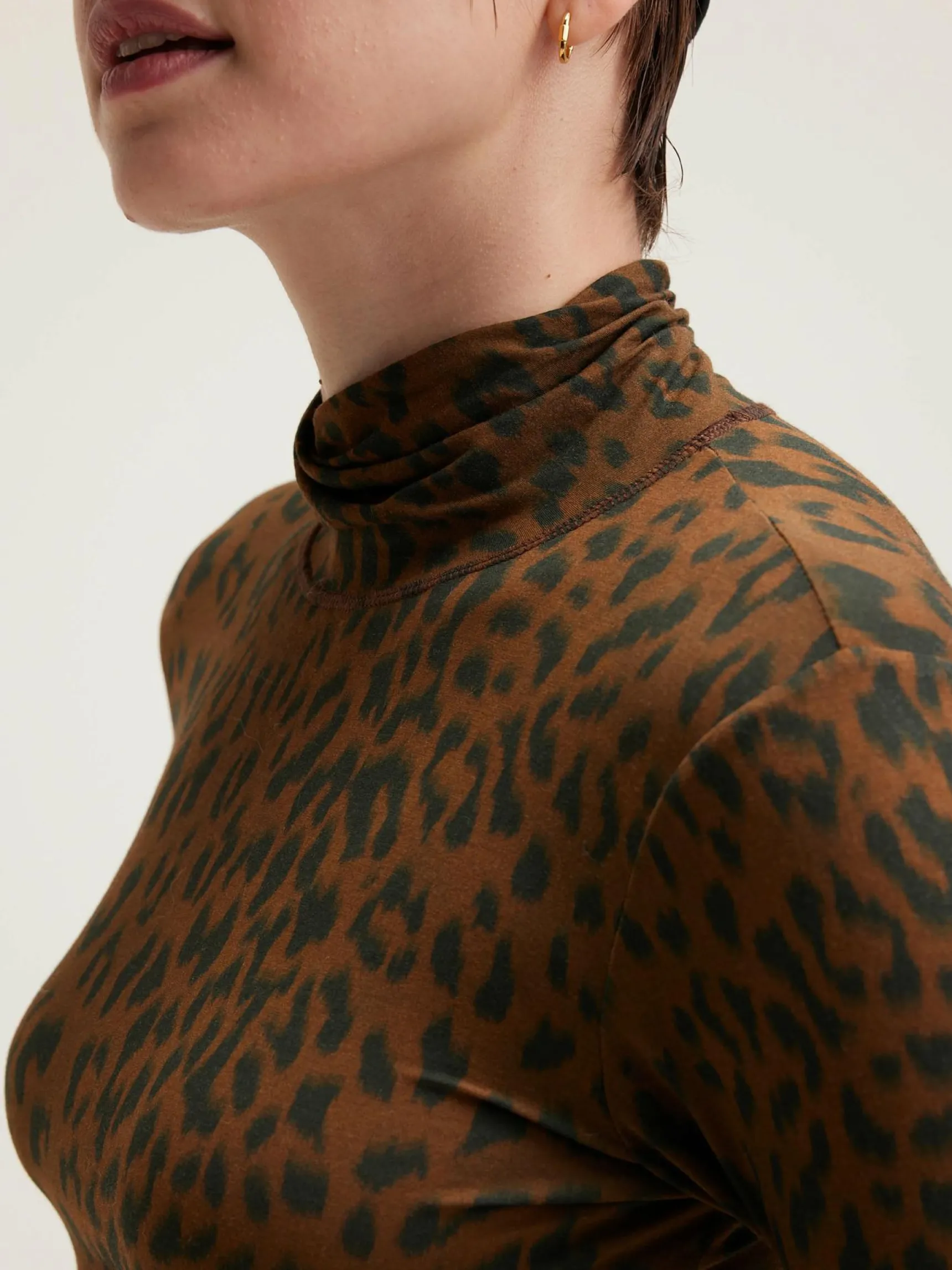 Slim fit T-shirt met rolkraag en luipaardprint, voelt aan als een tweede huid.