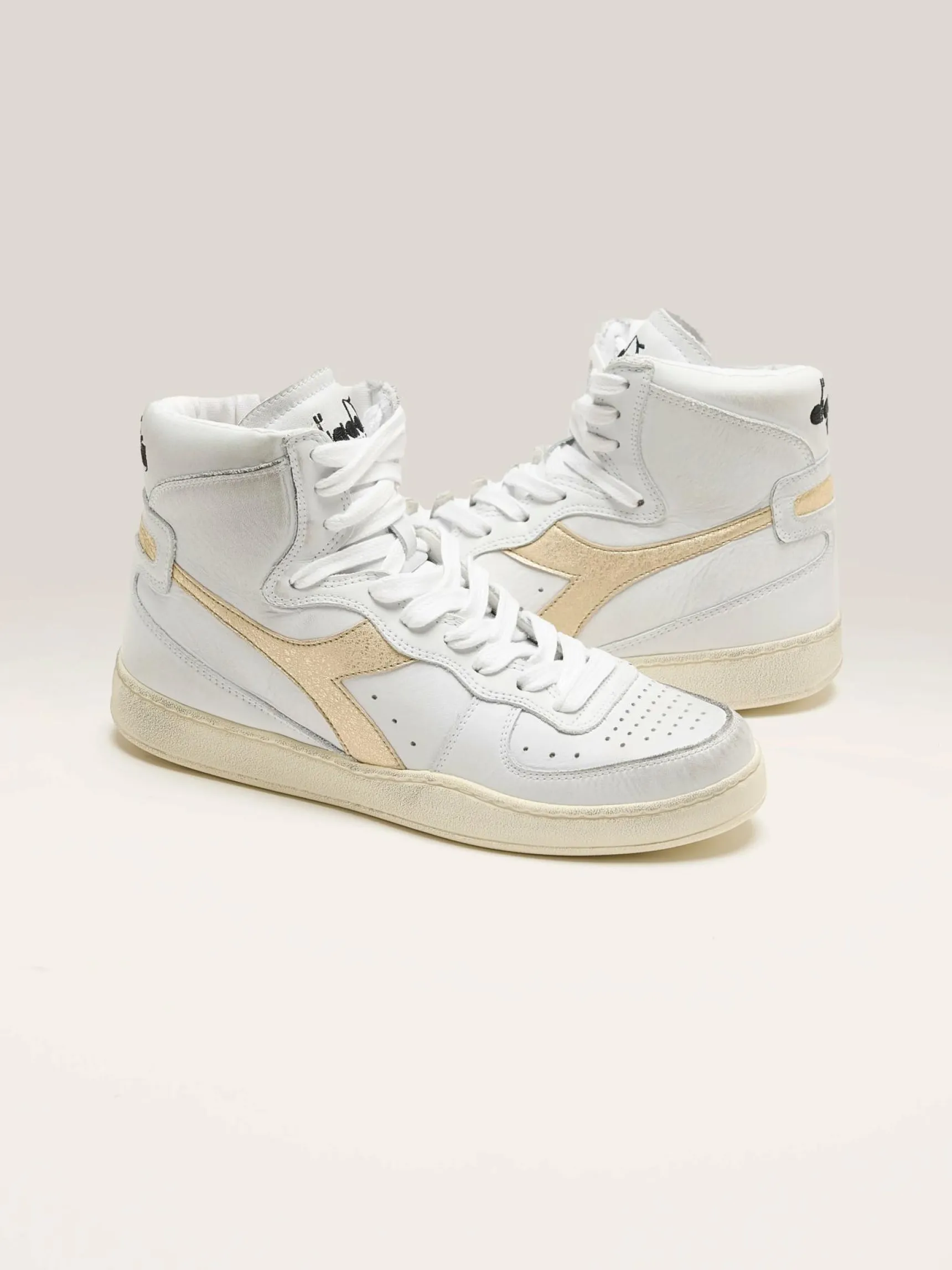 De Diadora Mi Basket Used Heritage high-top sneakers hebben een bovenwerk van volnerflederen met een speciale stonewash behandeling.