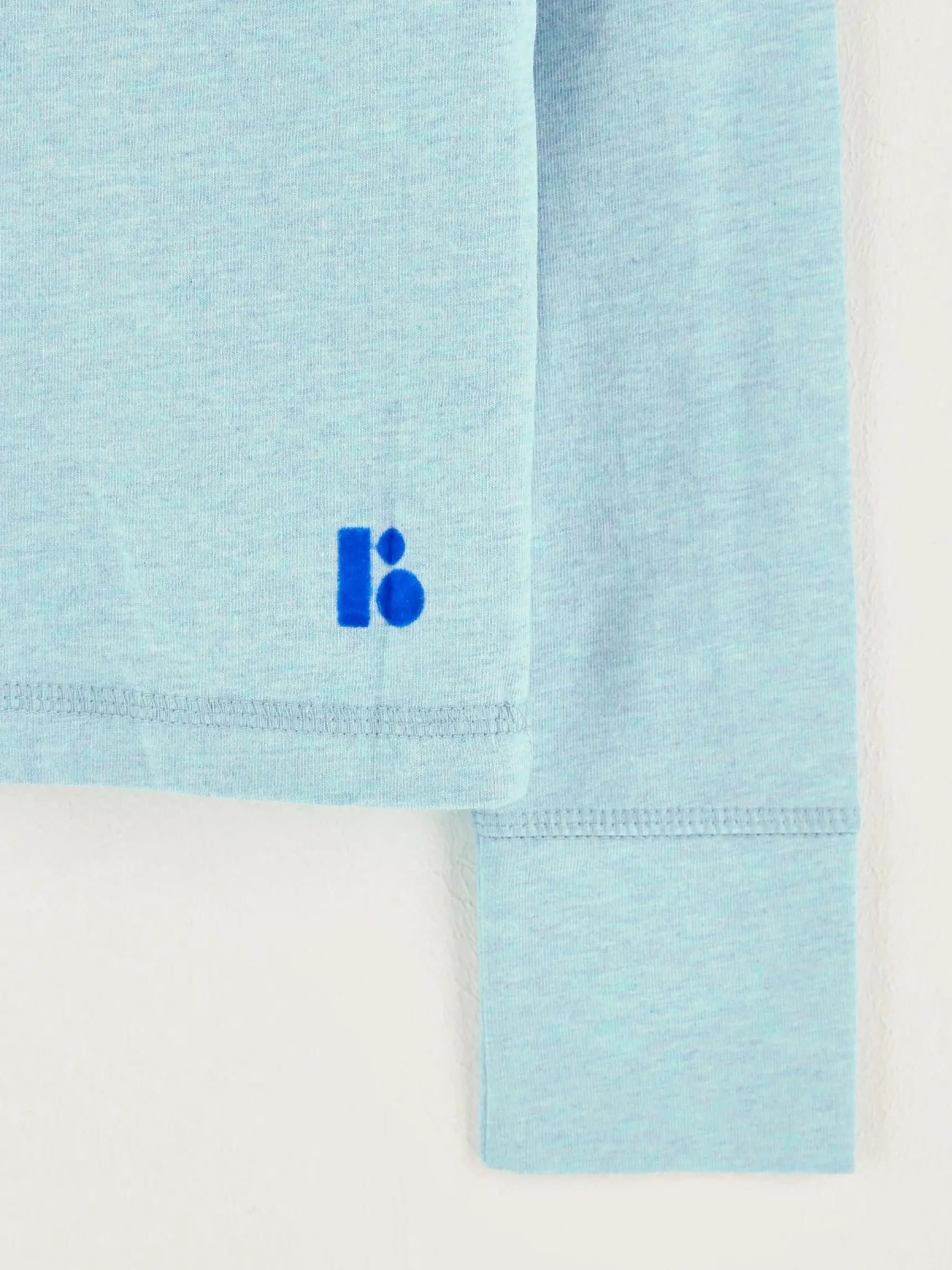 Blauw katoenen T-shirt met lange mouwen en een aansluitend model.