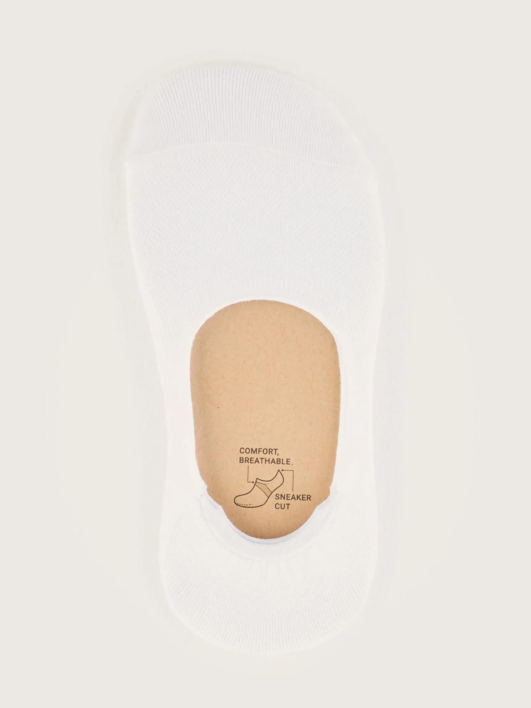 Klassieke enkelsokken in wit met geribd breisel rond de voet en antislipgum achterop de hiel.