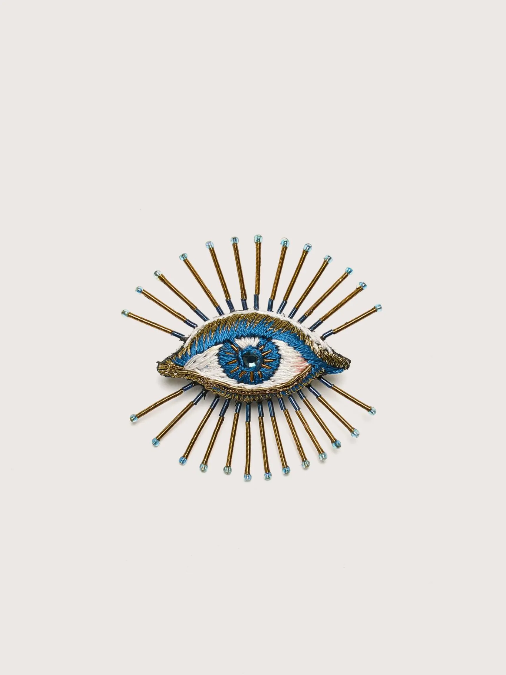 De Trovelore Sea Mystic Eye Broche speld, met de hand geborduurd door Indiase ambachtslieden, is een prachtig draagbaar kunstwerk.