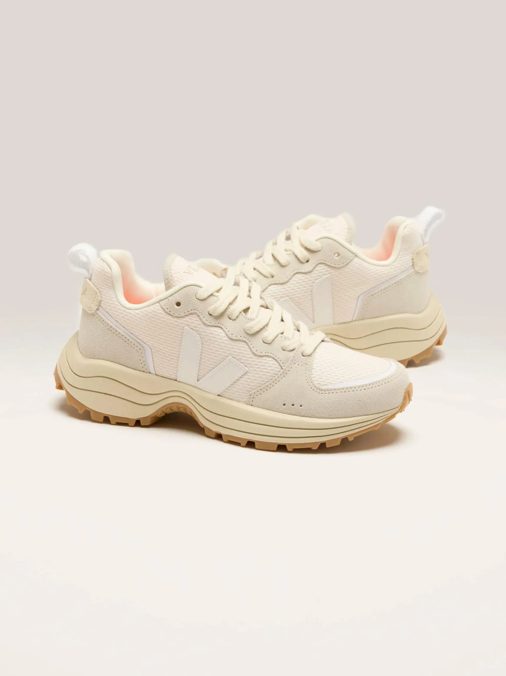The Veja Venturi II Hexamesh sneakers feature a B-mesh upper composed of recycled plastic with leather panels, 3D knit, and TPU details.