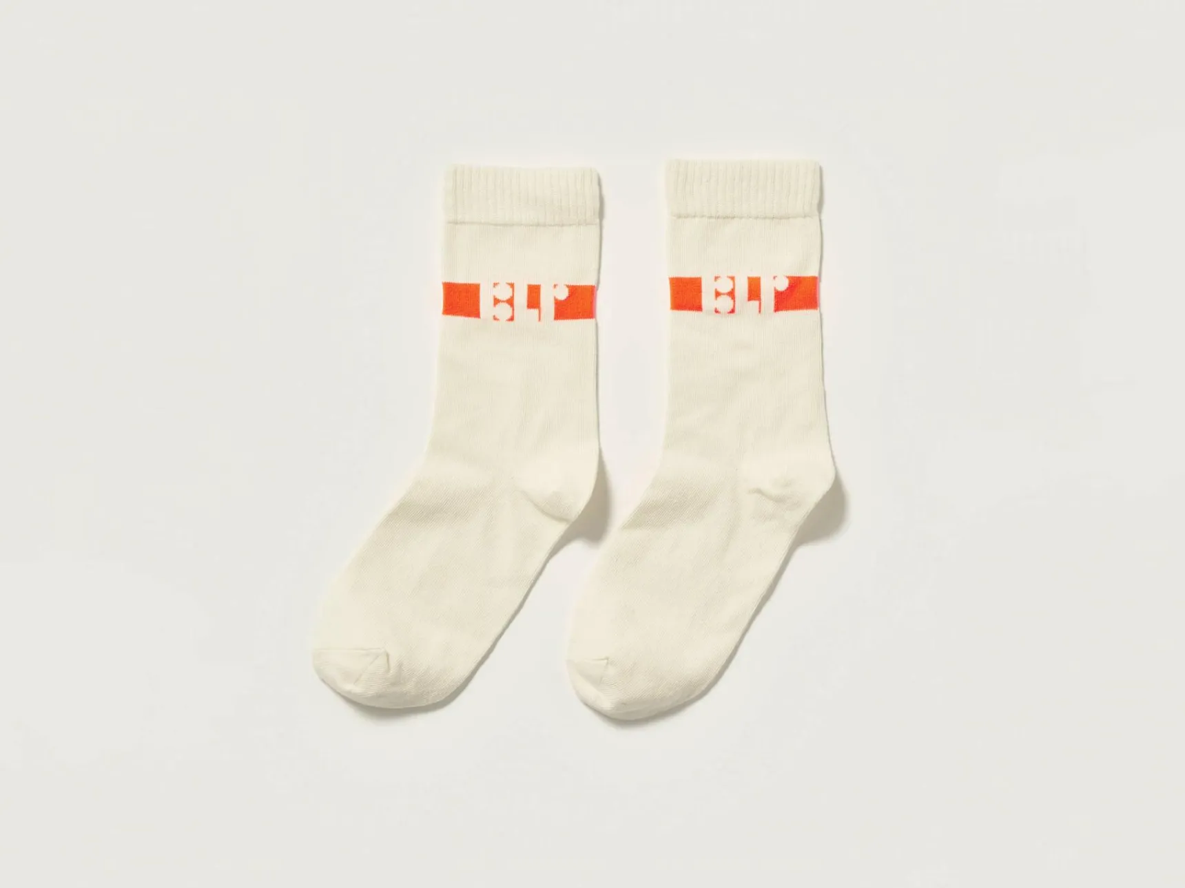 Klassieke BLR sokken in ecru met contrasterend logo op de enkel.