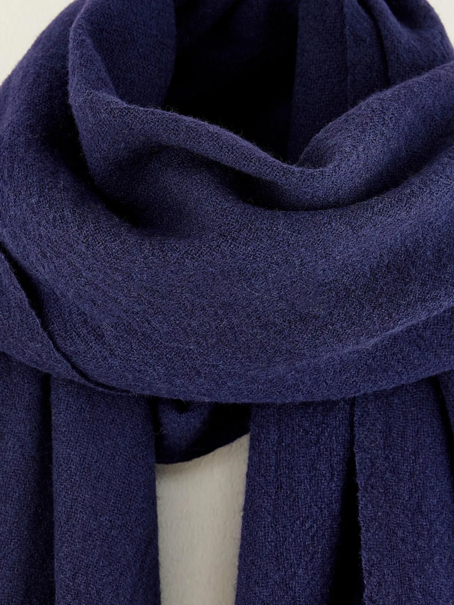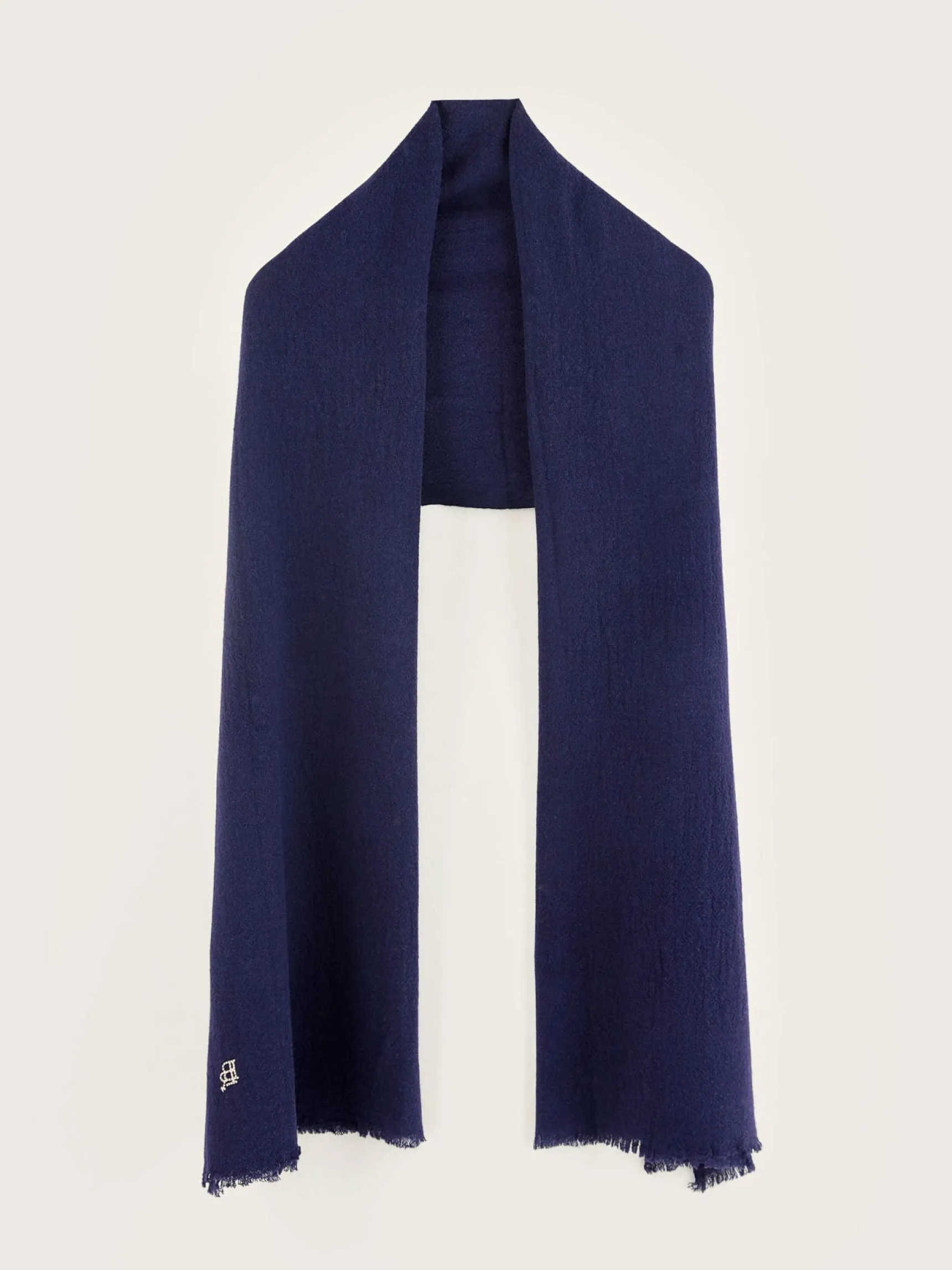 Zachte sjaal in marineblauw, die zowel warmte als stijl biedt voor de koelere dagen.