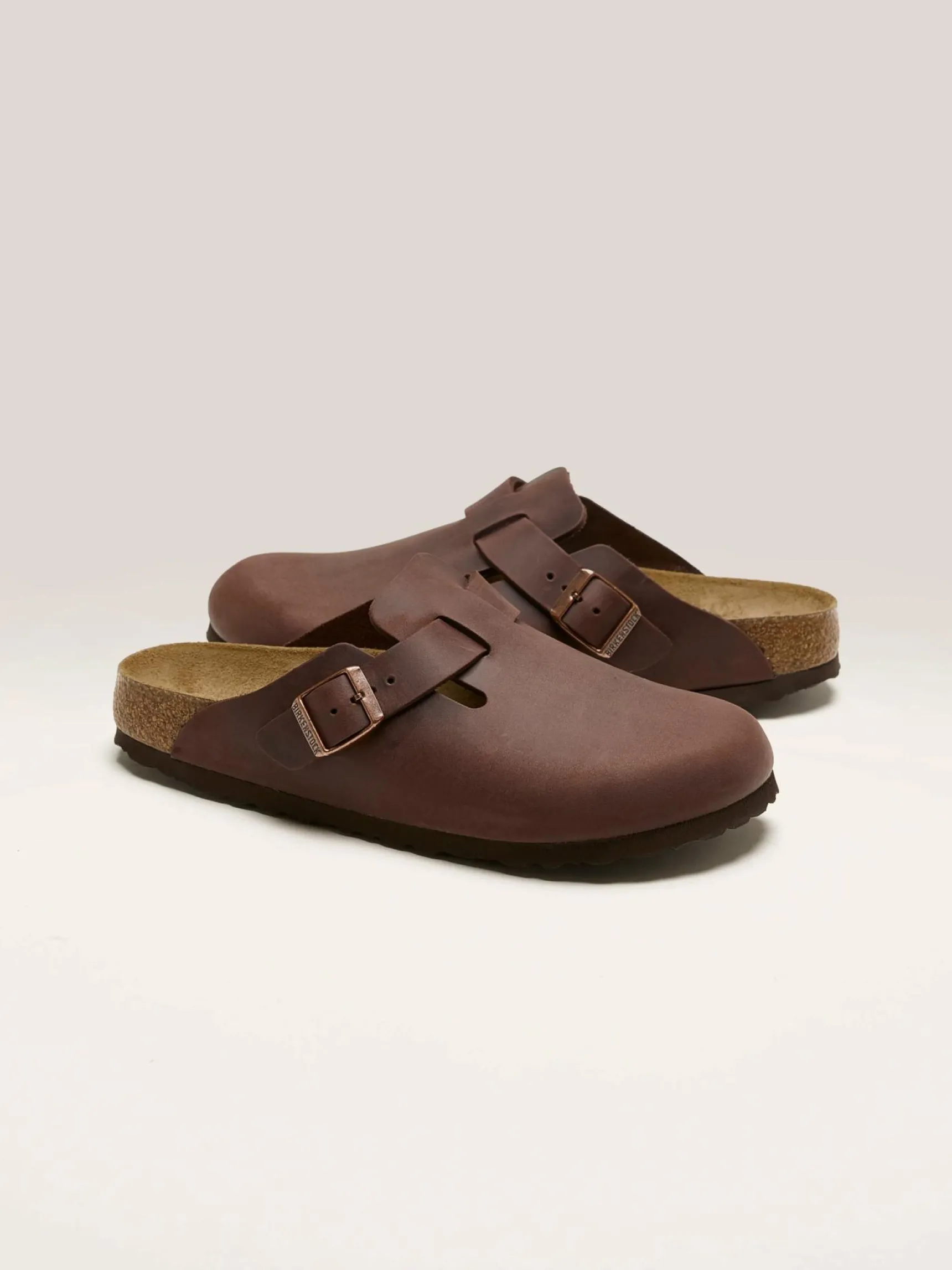De Birkenstock Boston klompen met zacht voetbed hebben een bovenwerk van geolied nubuckleder met een anatomisch gevormd kurken voetbed.