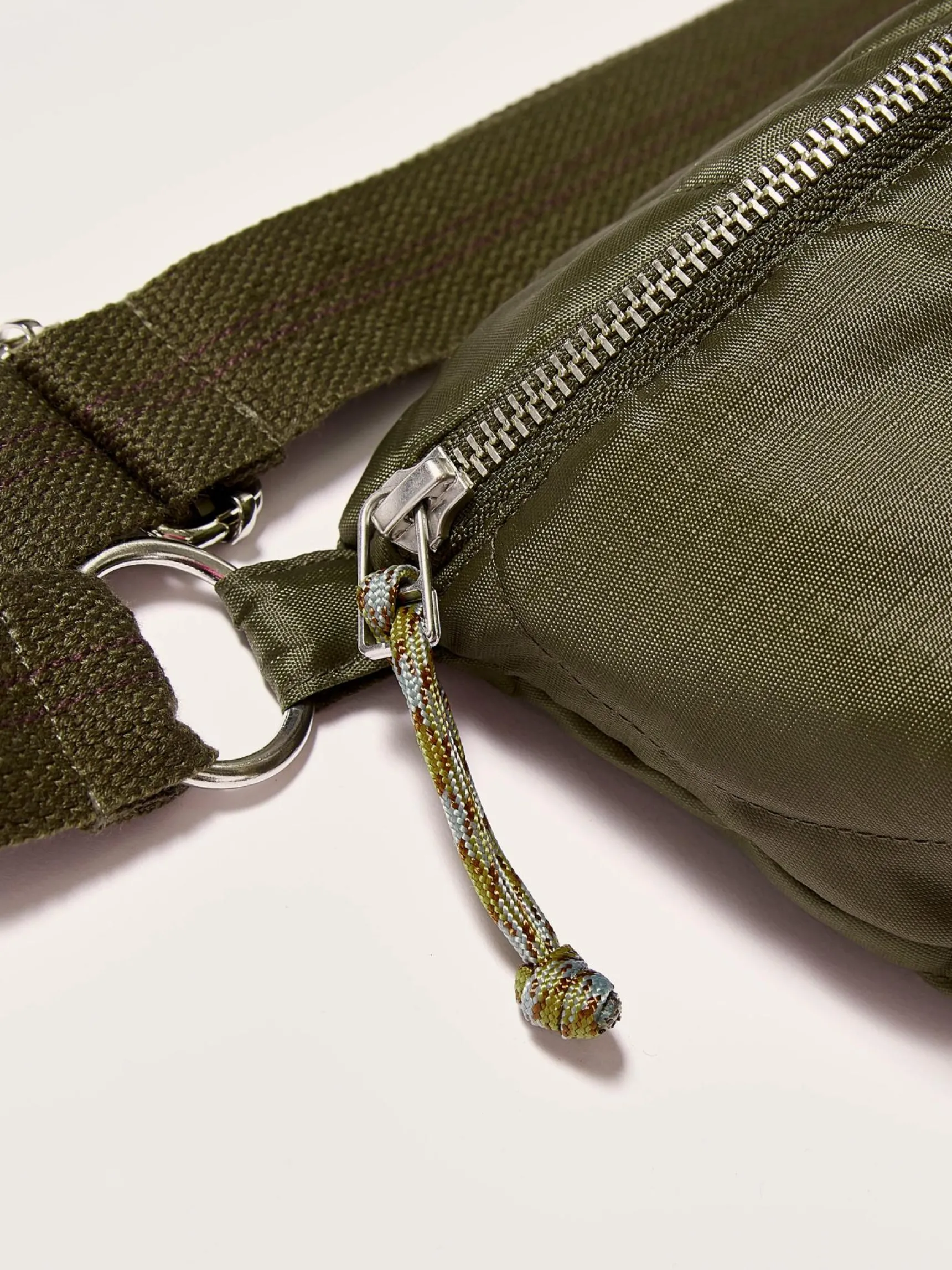 Sling bag met ritssluiting vooraan, van mosgroen, gewatteerd nylon.