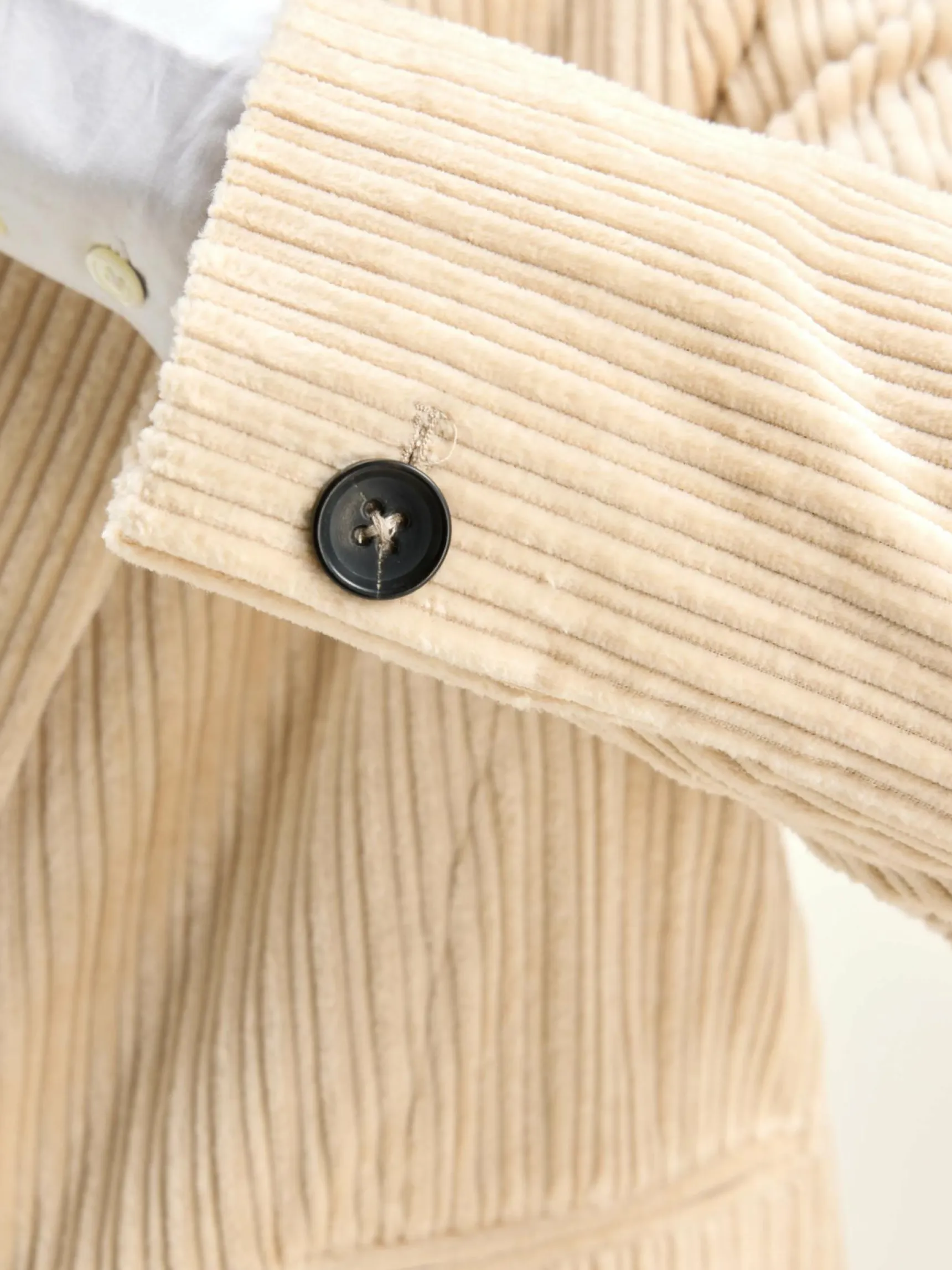 Klassieke ecru blazer met relaxed model, van corduroy met onregelmatige brede rib.
