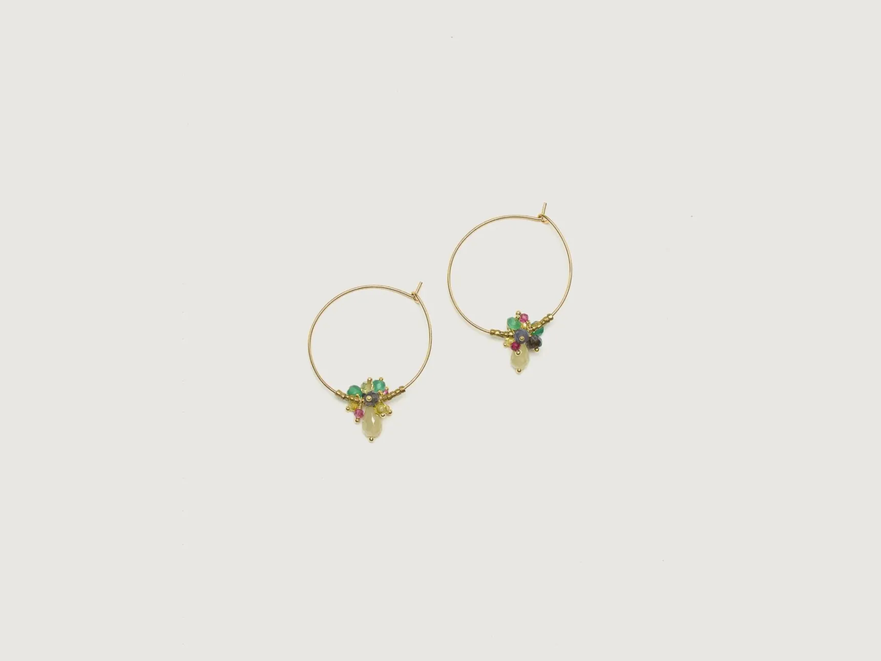 De Untitledition Bocciolo Oorbellen zijn een charmante verzameling van edelstenen en handgemaakte messing kralen op een gouden vermeil ring.
