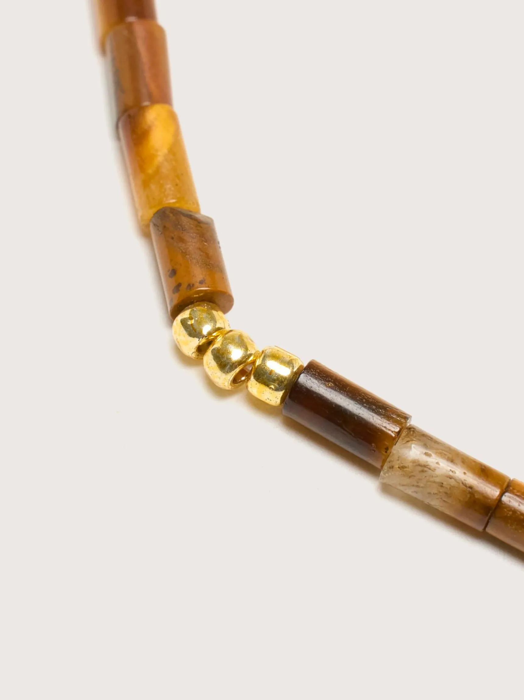De Anni Lu Sun Stalker armband heeft tijgeroogstenen en glaskralen met 18k verguld messing.