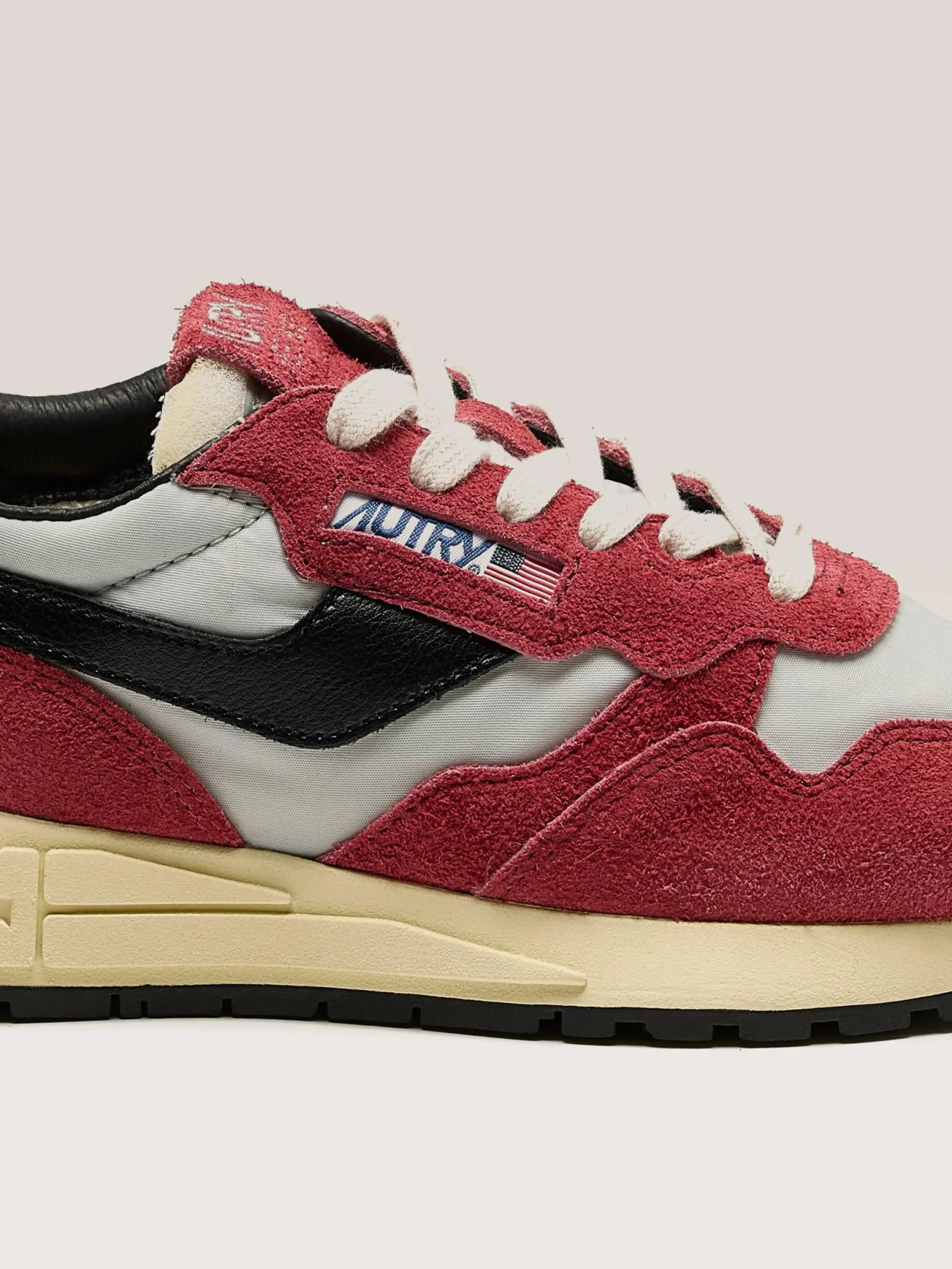 De Autry Reelwind low-top sneakers zijn een unieke vintage esthetiek en een combinatie van nylon, leder en suède.