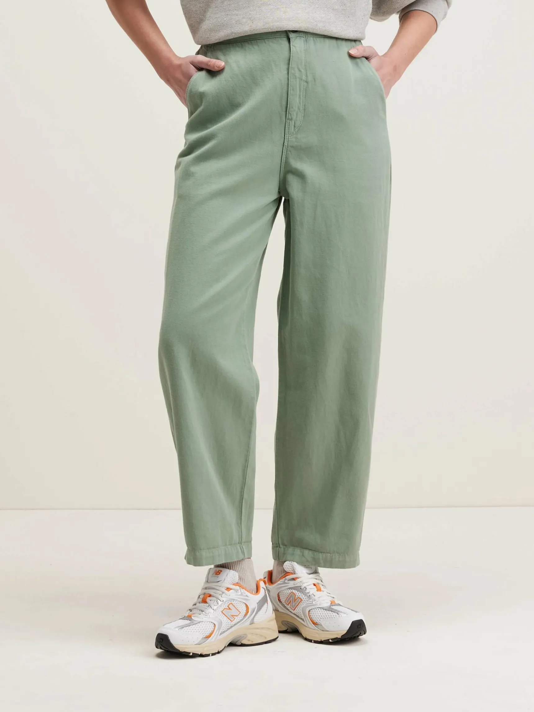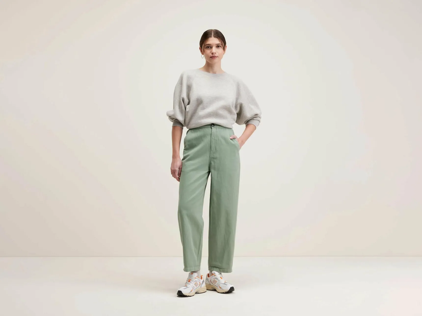 Relaxed broek van eucalyptusgroene canvas (van katoen en linnen).
