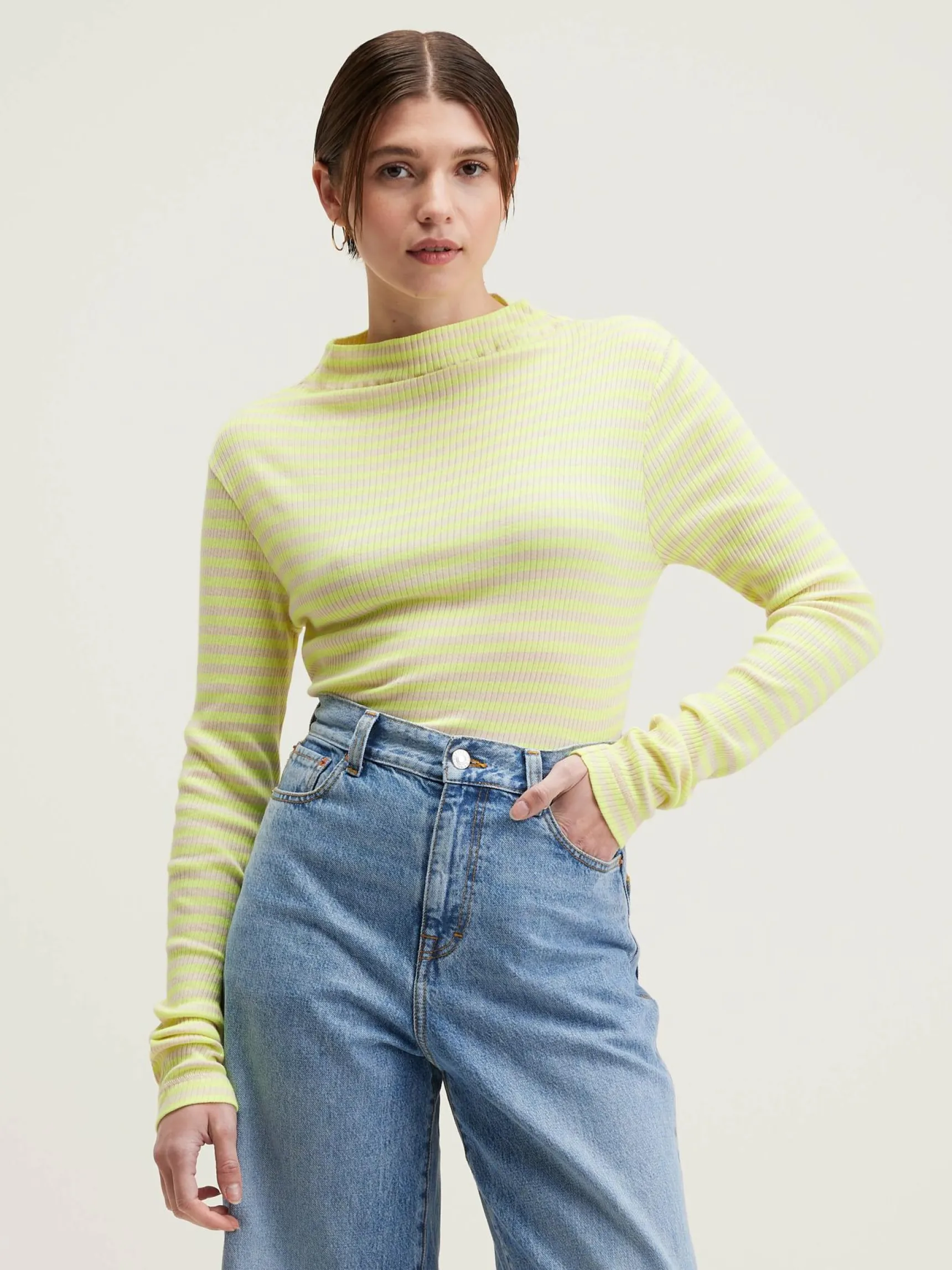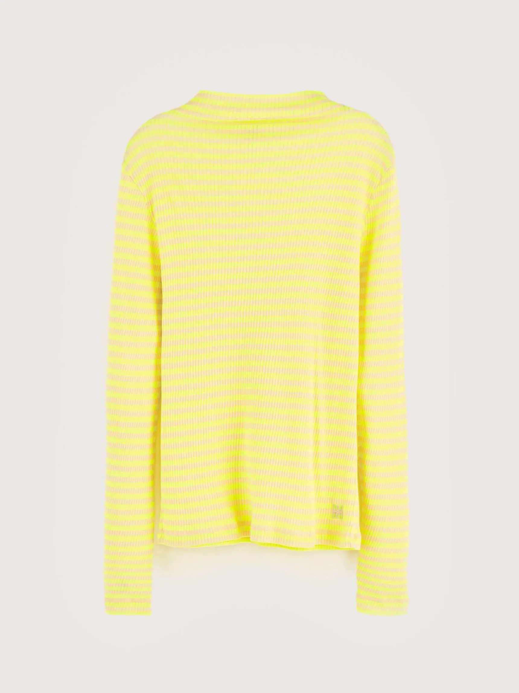 Licht, slim fit T-shirt, geribd en met gele strepen.