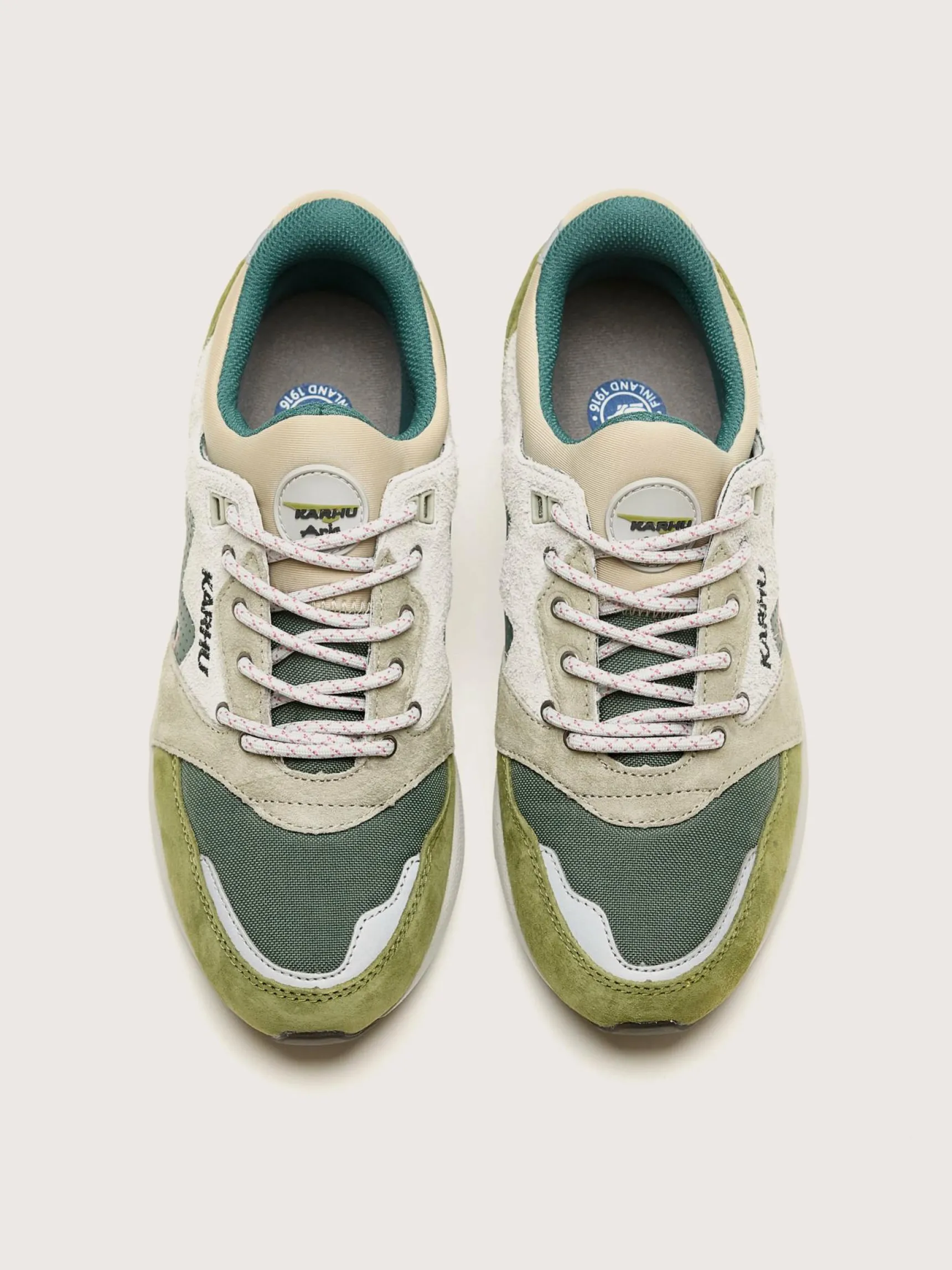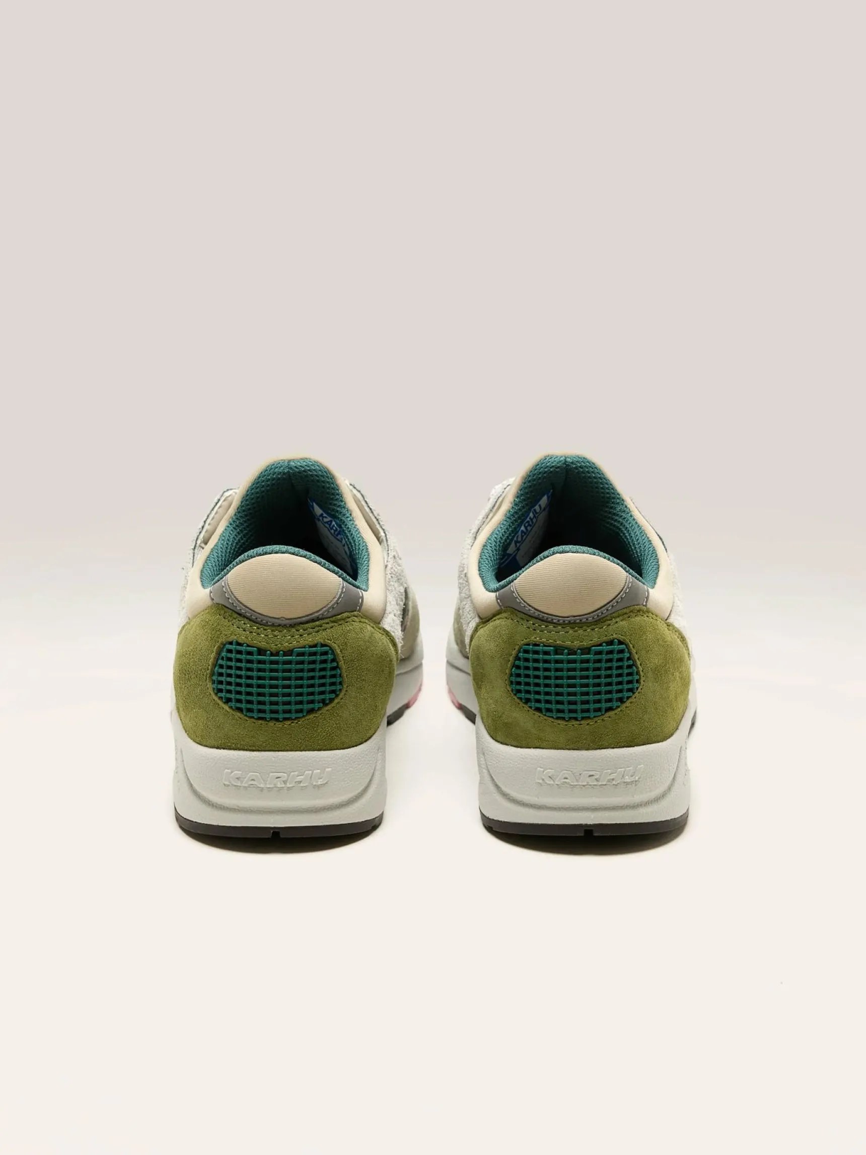 De Karhu Aria 95 lifestyle sneakers hebben een lycra mono sokconstructie en een bovenwerk van suède met waterafstotend mesh.