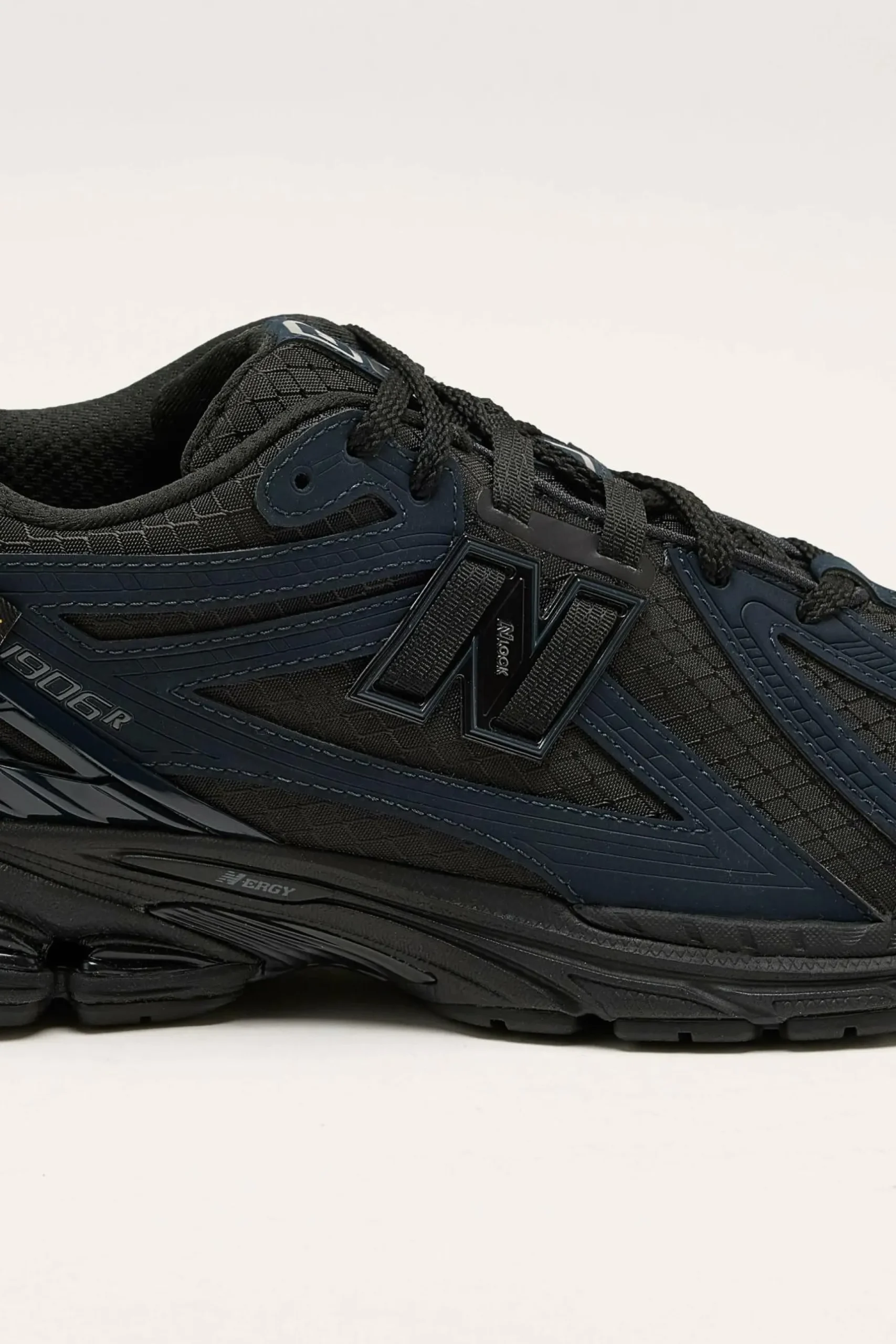 The New Balance 1906R lifestyle sneaker has a mesh upper with suede overlays and a specialized, cushioned midsole and heel.
