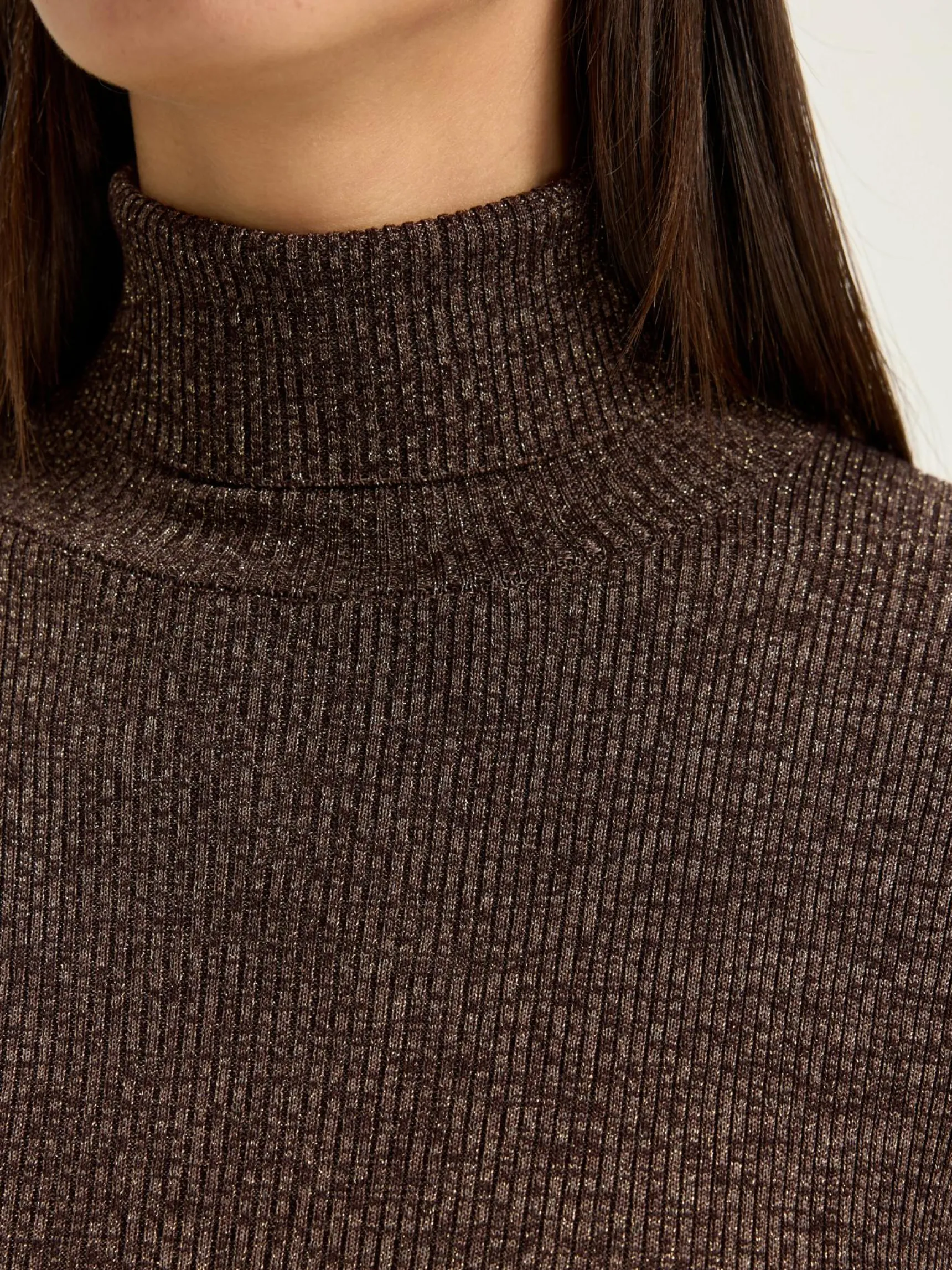 Bruine trui van lurexgaren, slim model.