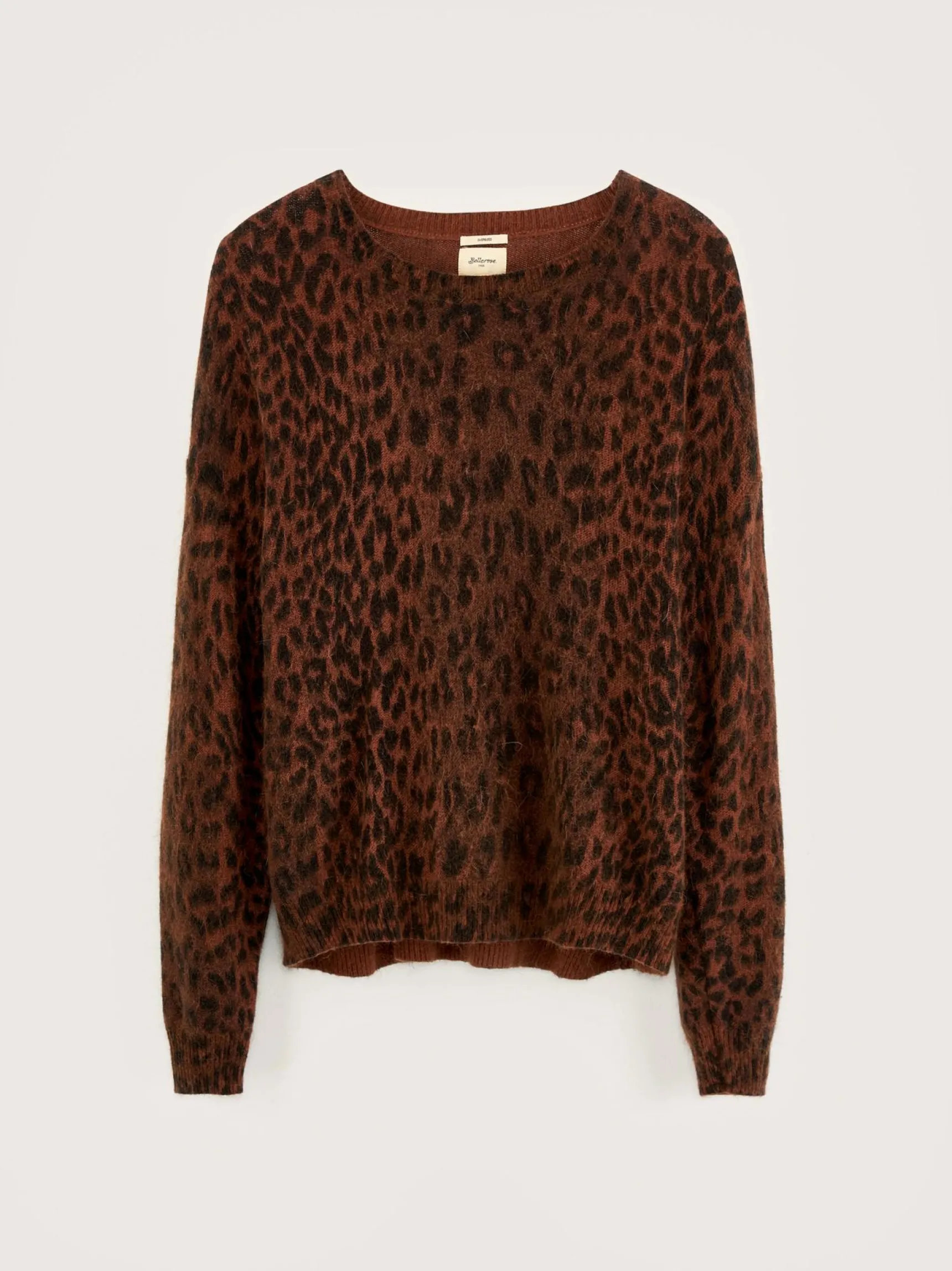 Oversizede trui met ronde hals en luipaardpatroon, van angoramix.