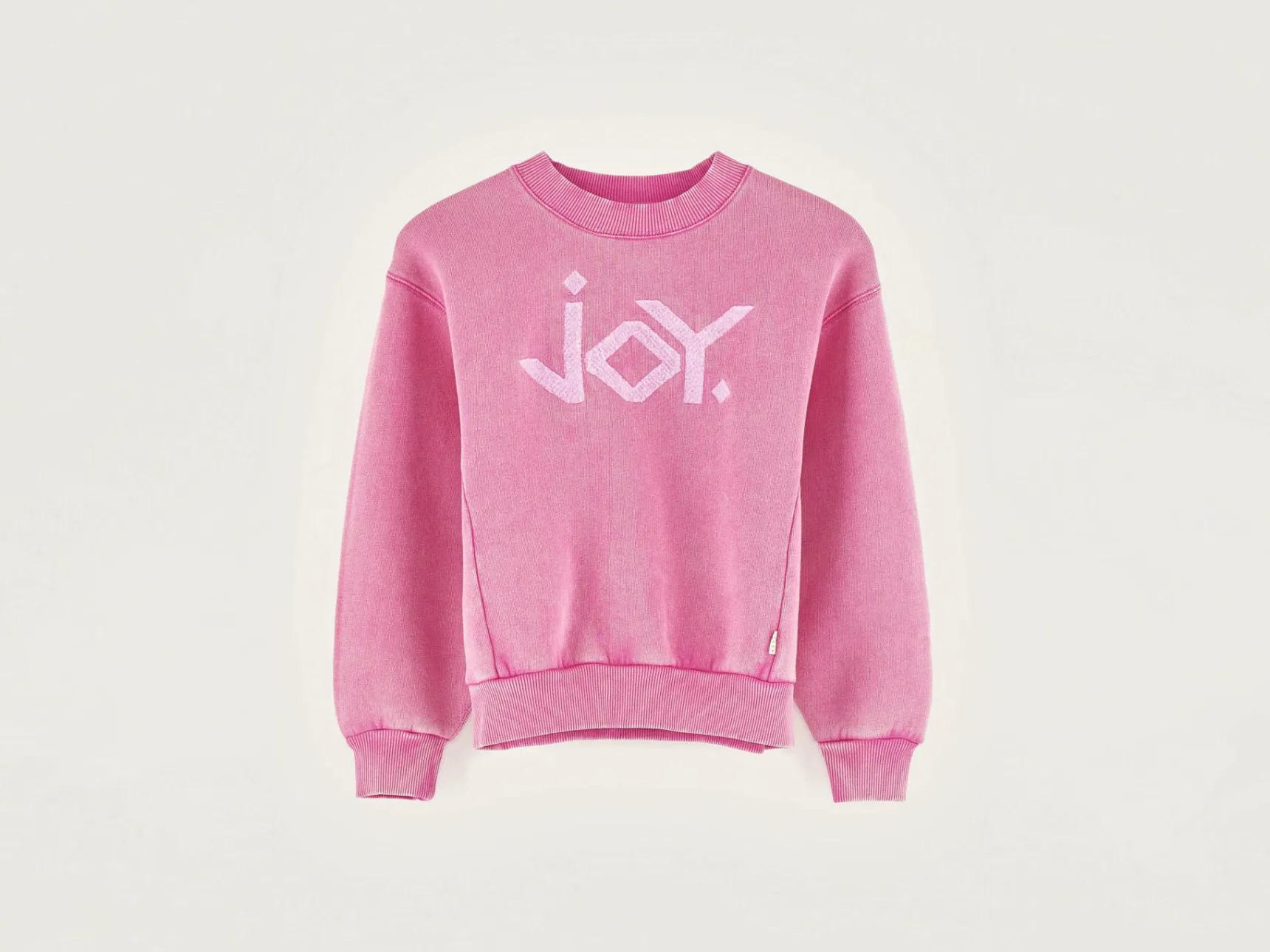 - Vilten “JOY”-bedrukking vooraan