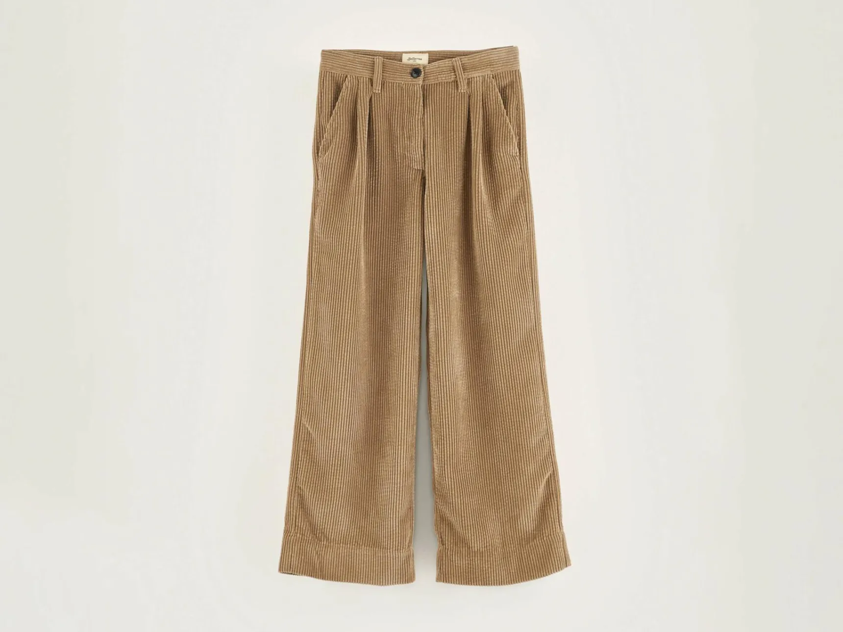 Beige broek met tailored fit en hoge taille, van corduroy met brede rib.