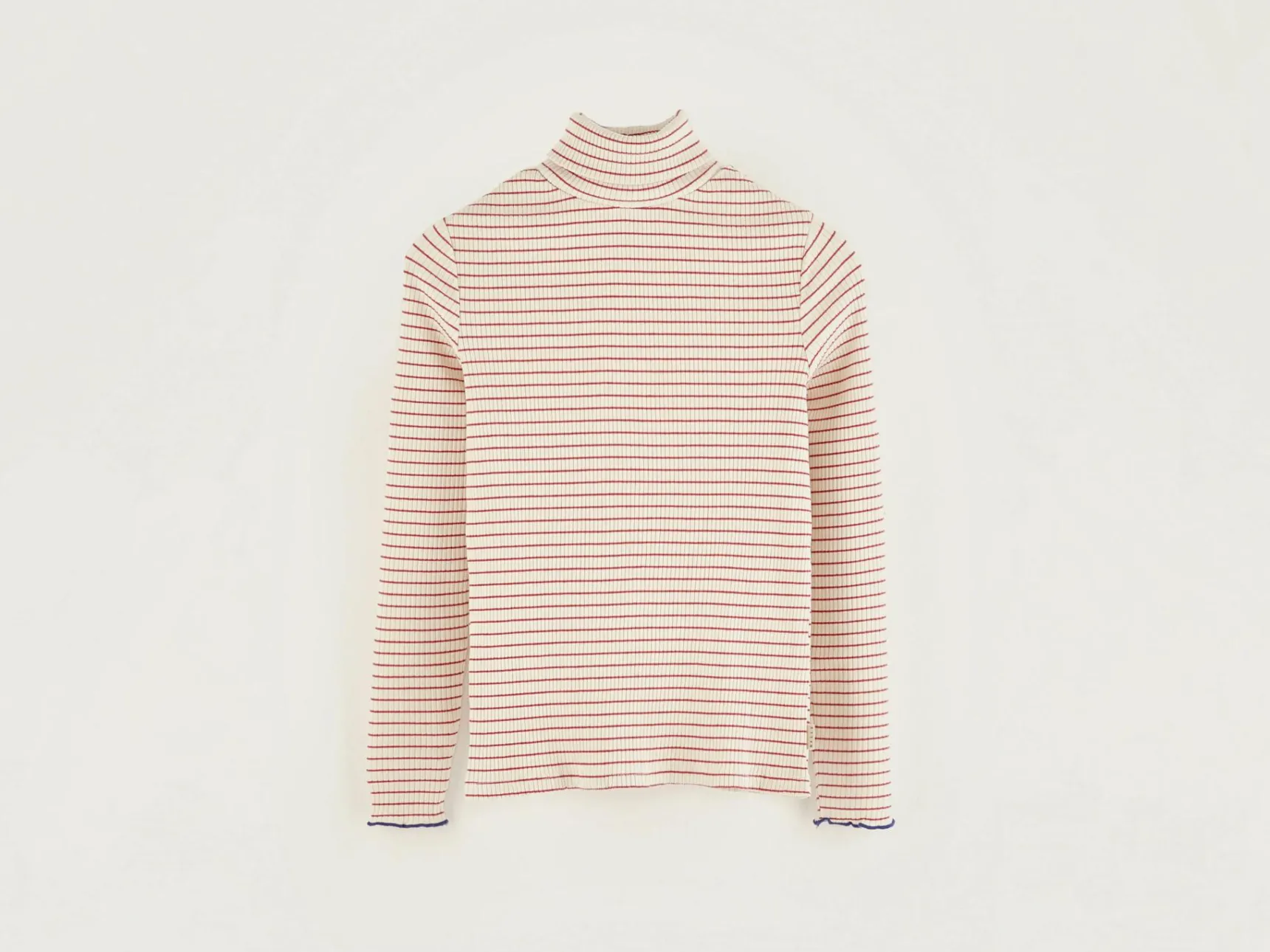 Aansluitend T-shirt met lange mouwen, rolkraag en rode strepen.