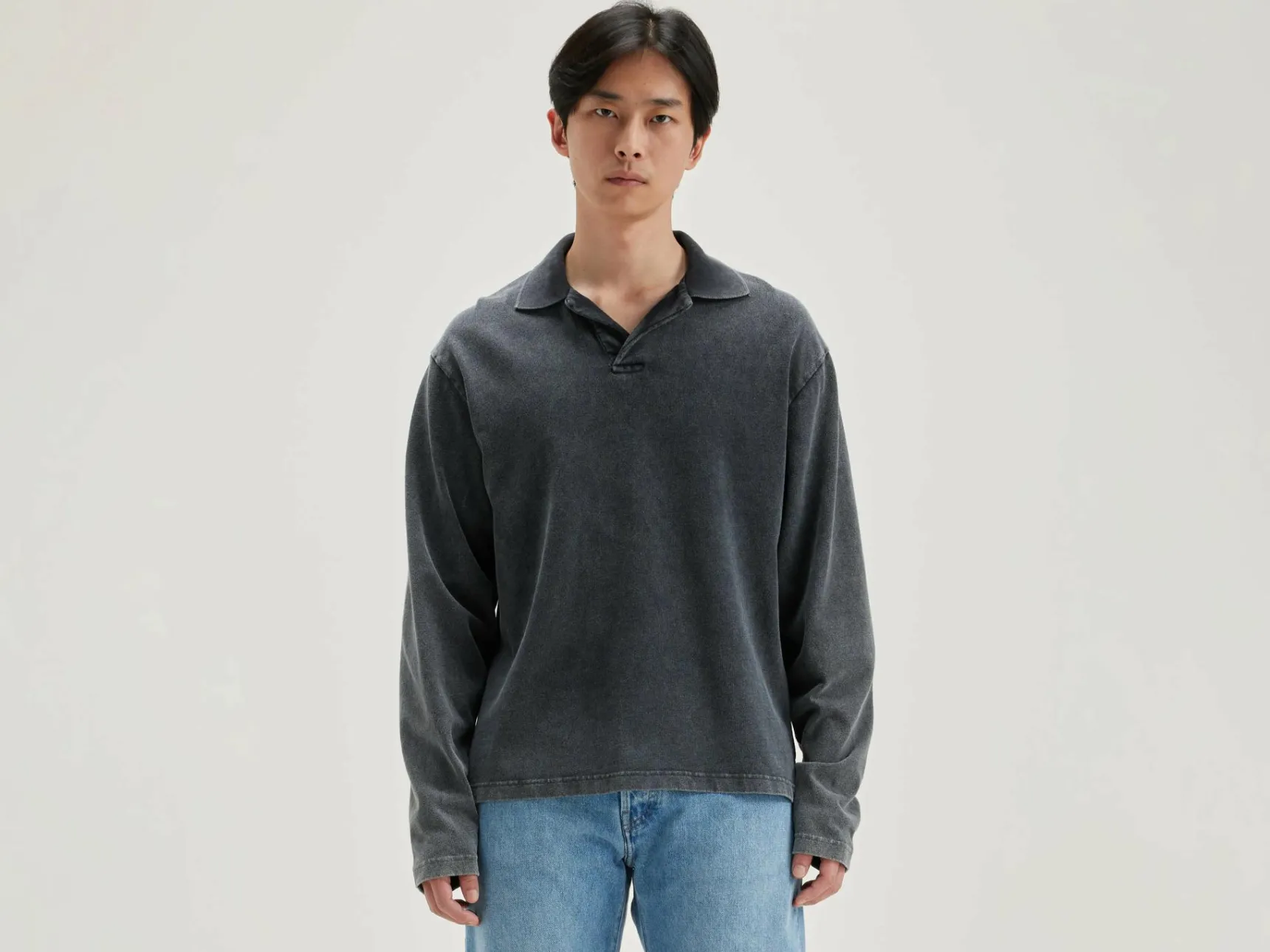 Comfortabele polo van zwartblauw gewassen katoen.