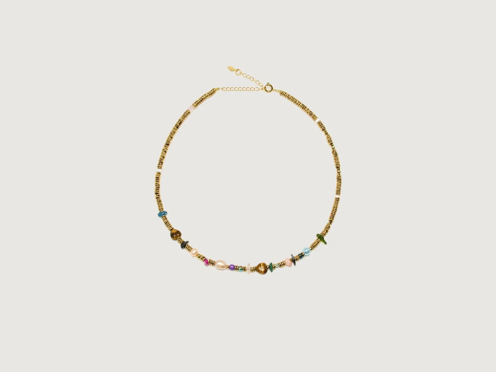 The Vadi Jewels Tina necklace is an eclectic strand of gold hematite and cultured pearls.