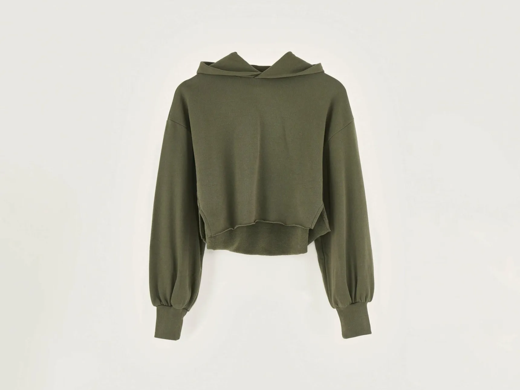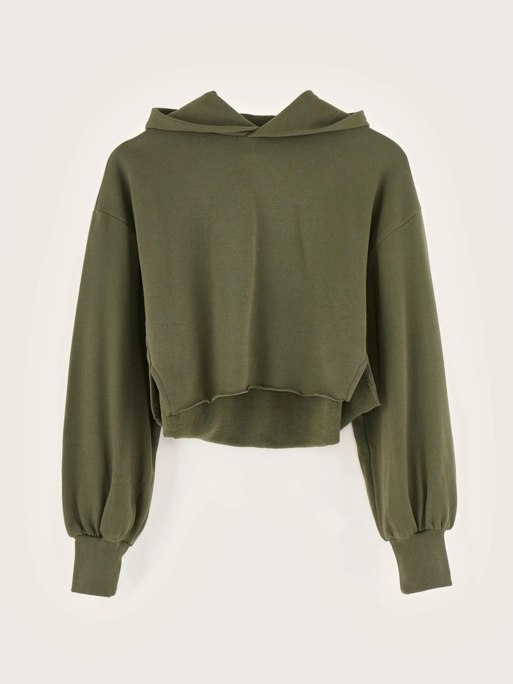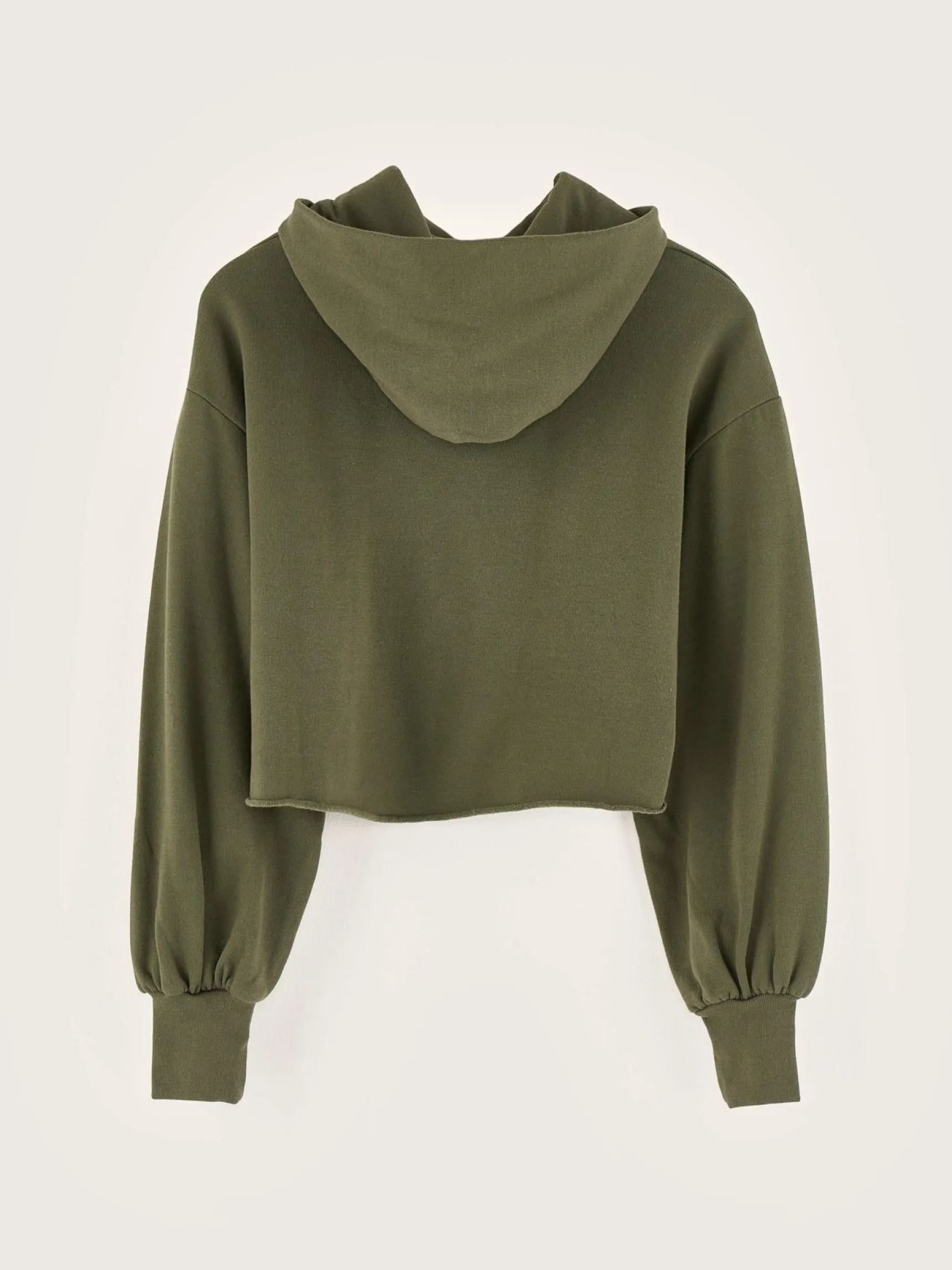 Losse, mosgroene cropped hoodie van sponsfleece.