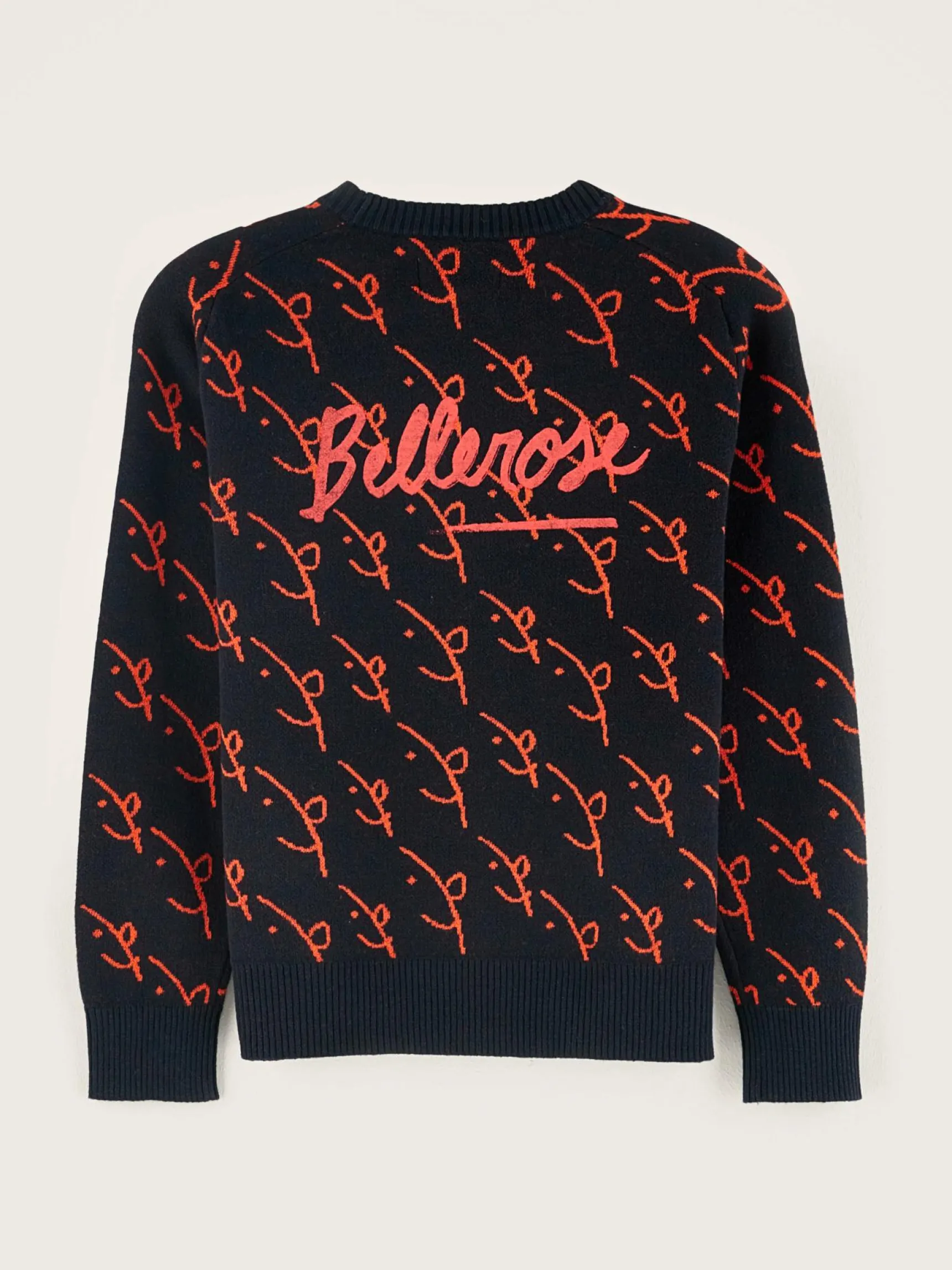 Klassieke sweater met V-hals, van katoen en wol, volledig bedrukt met een jacquardpatroon en een Bellerose x The Animal Observatory-print op de borst en op de rug.
