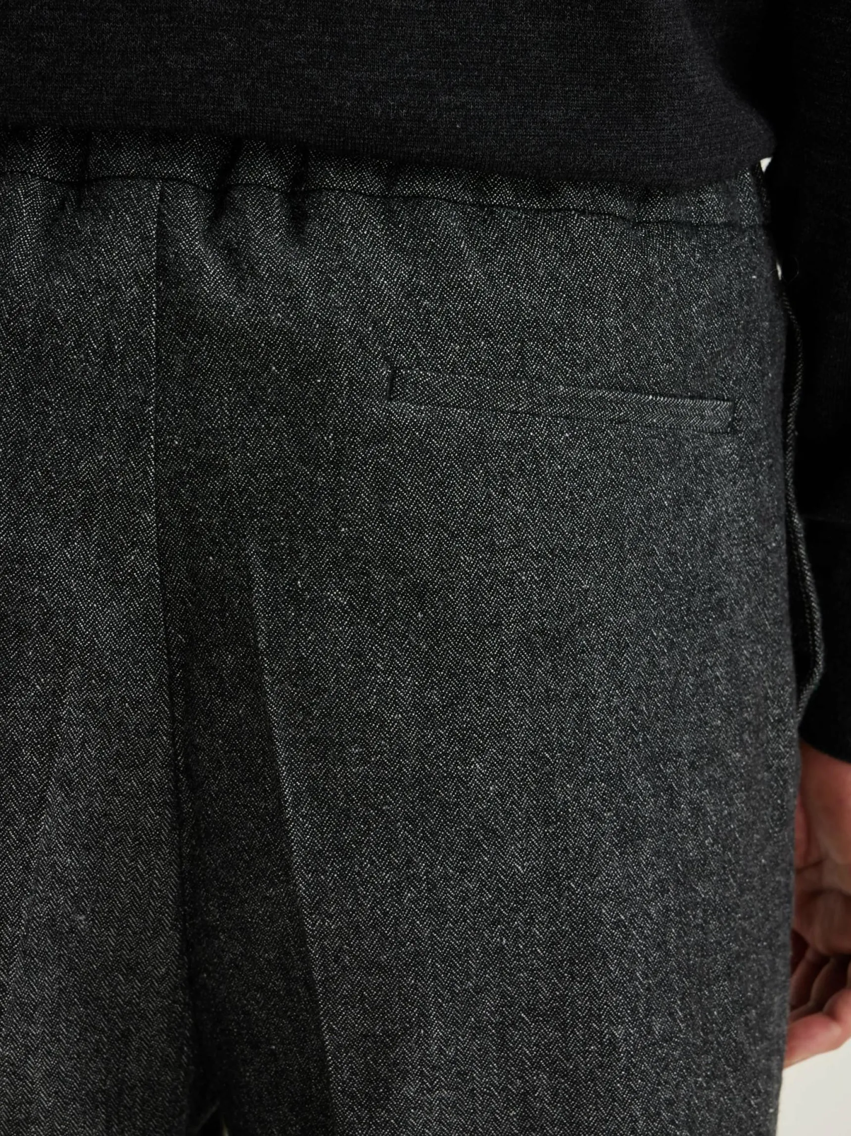 Regular fit broek, met een normale, elastische taille, van stof met grijs keperpatroon.