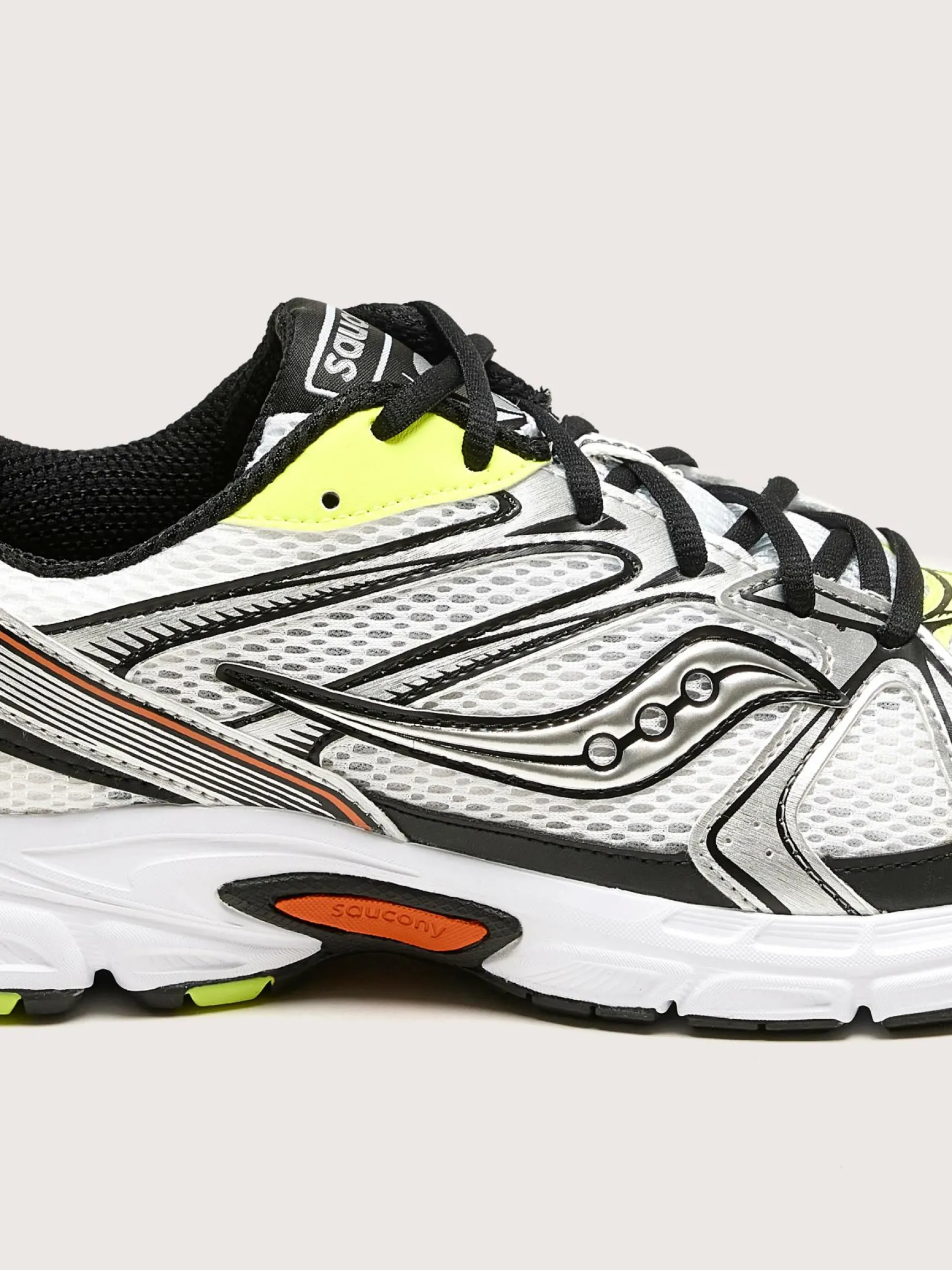 The Saucony Grid Ride Millennium everyday sneaker features grid cushioning, mesh, and metallic details.