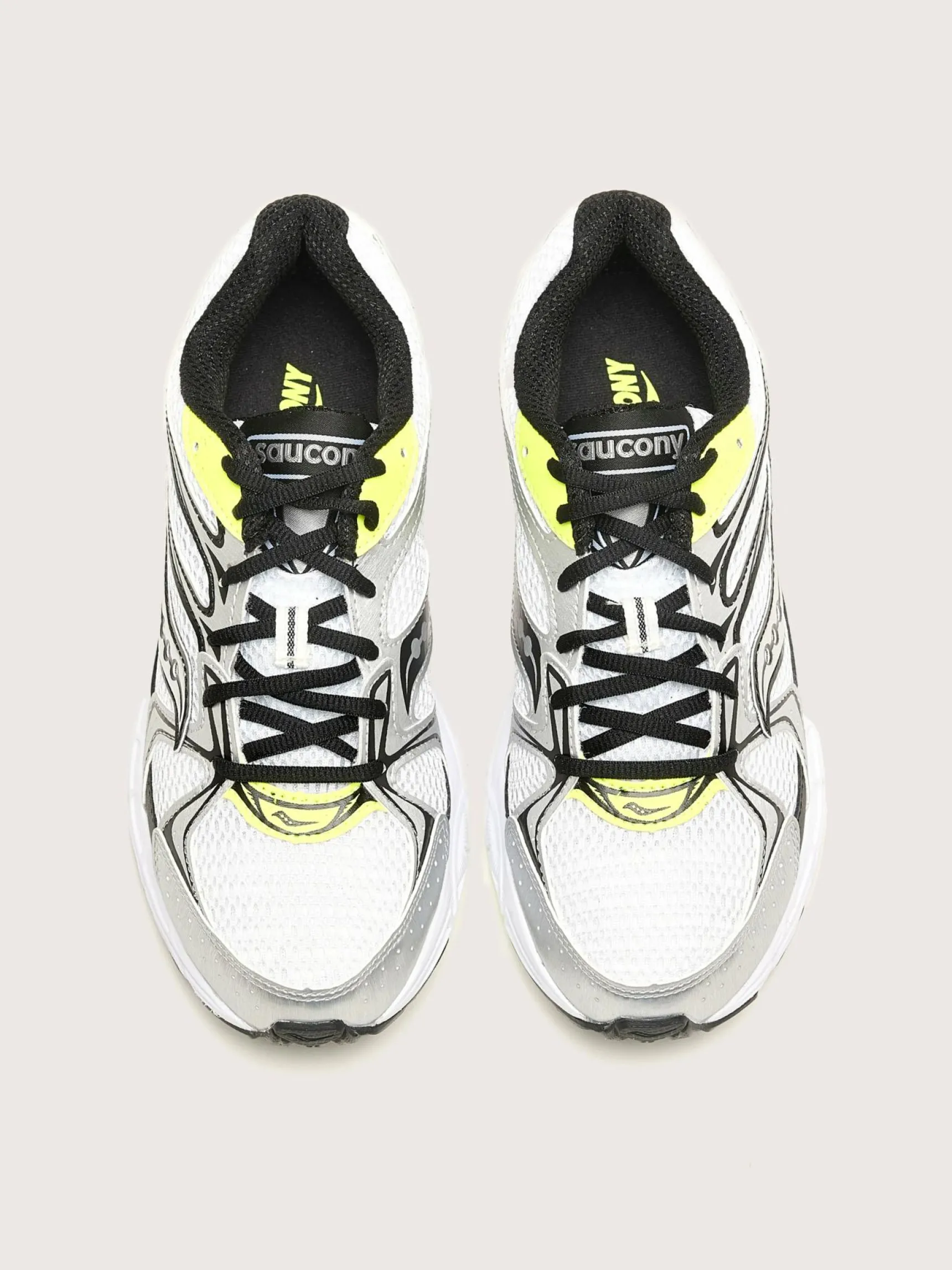 De Saucony Grid Ride Millennium alledaagse sneakers hebben rasterdemping, mesh en metallic details.