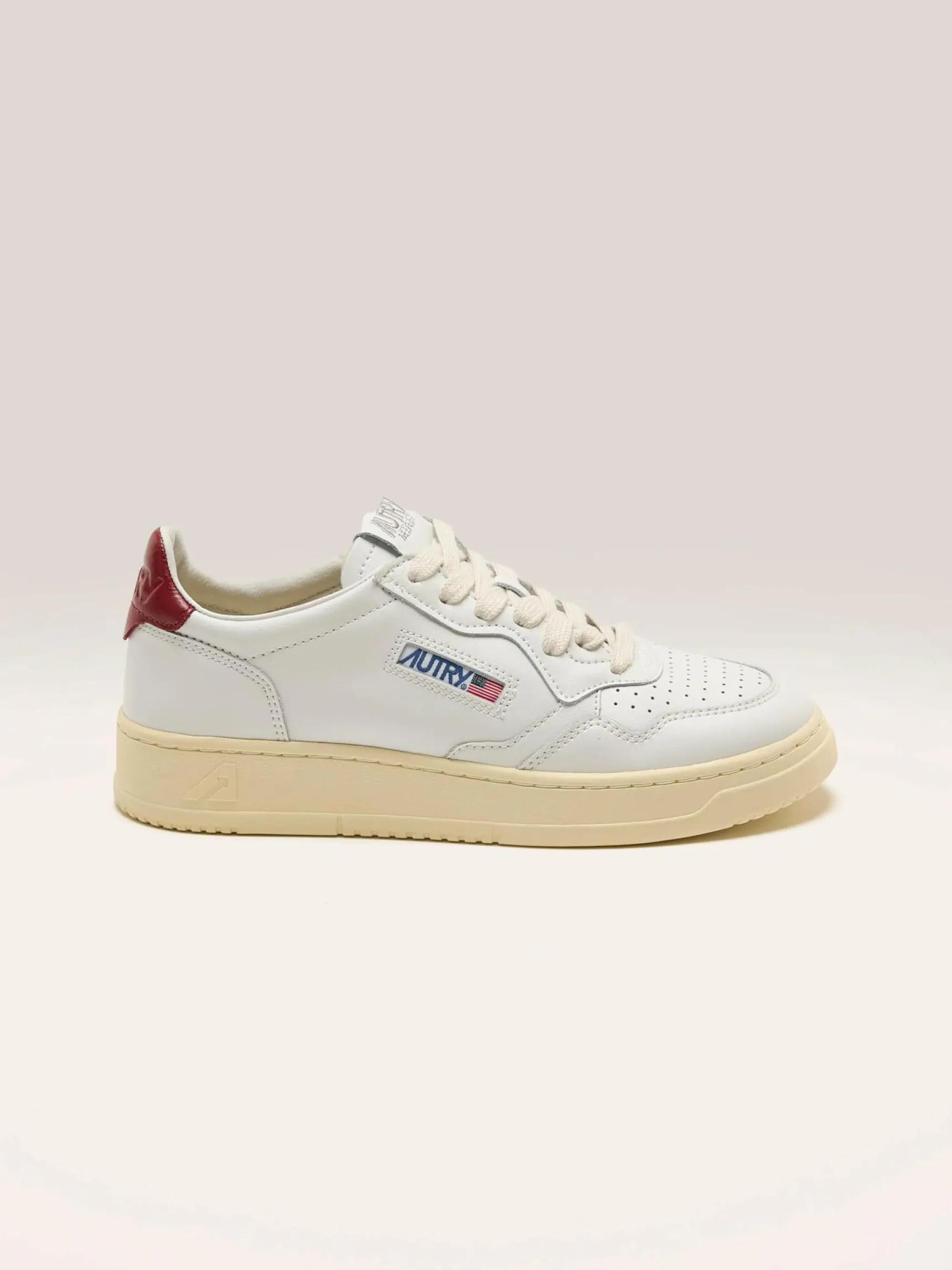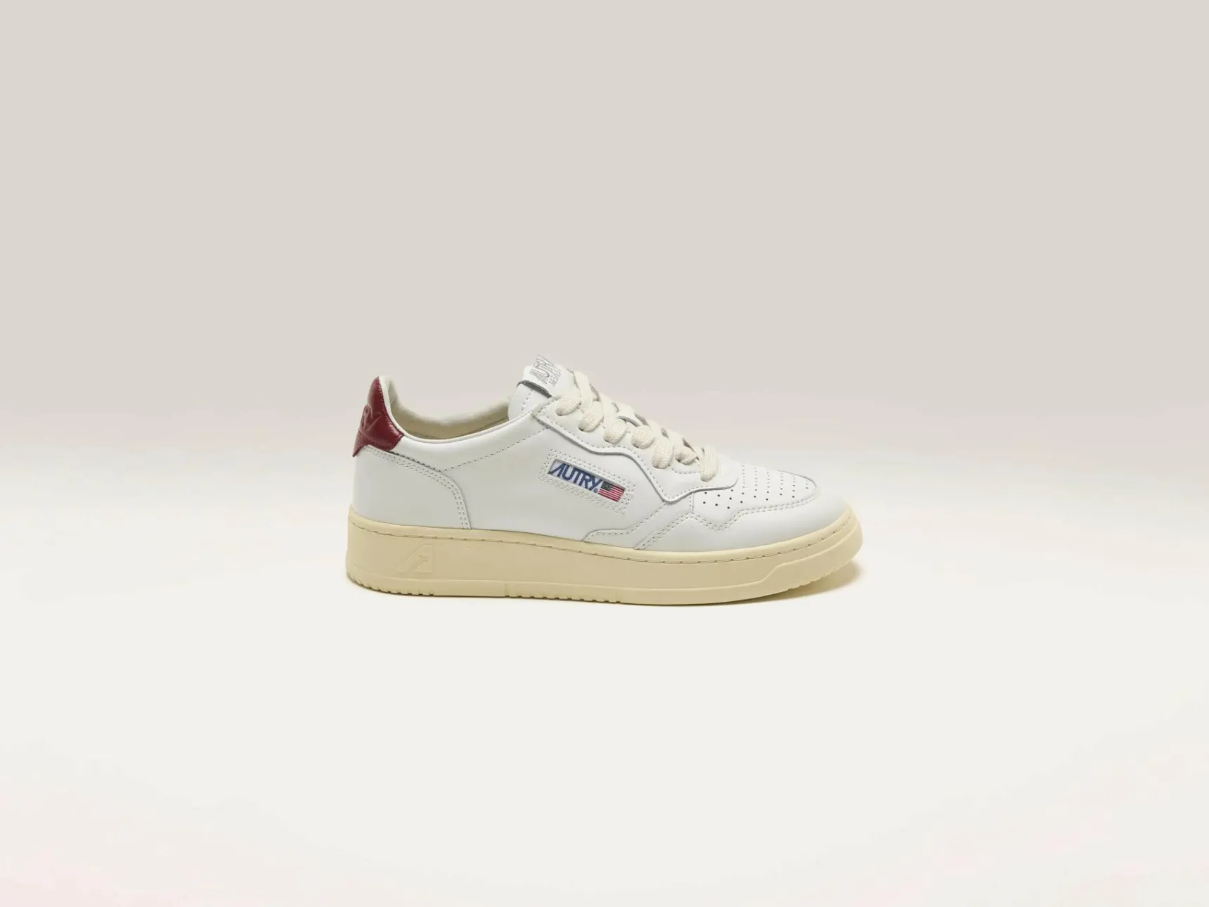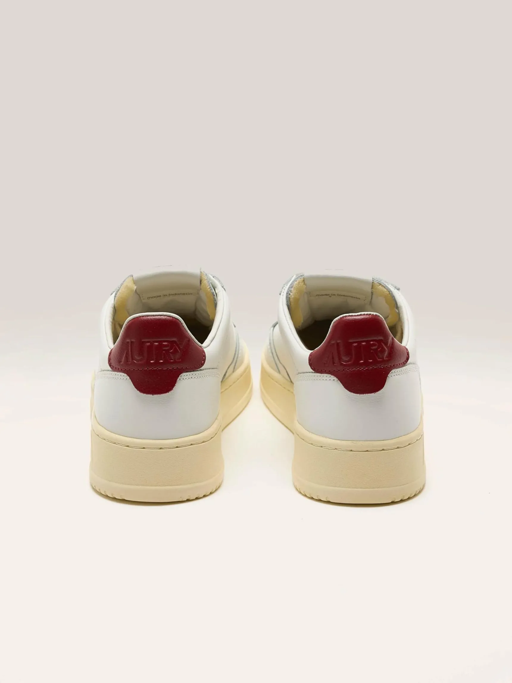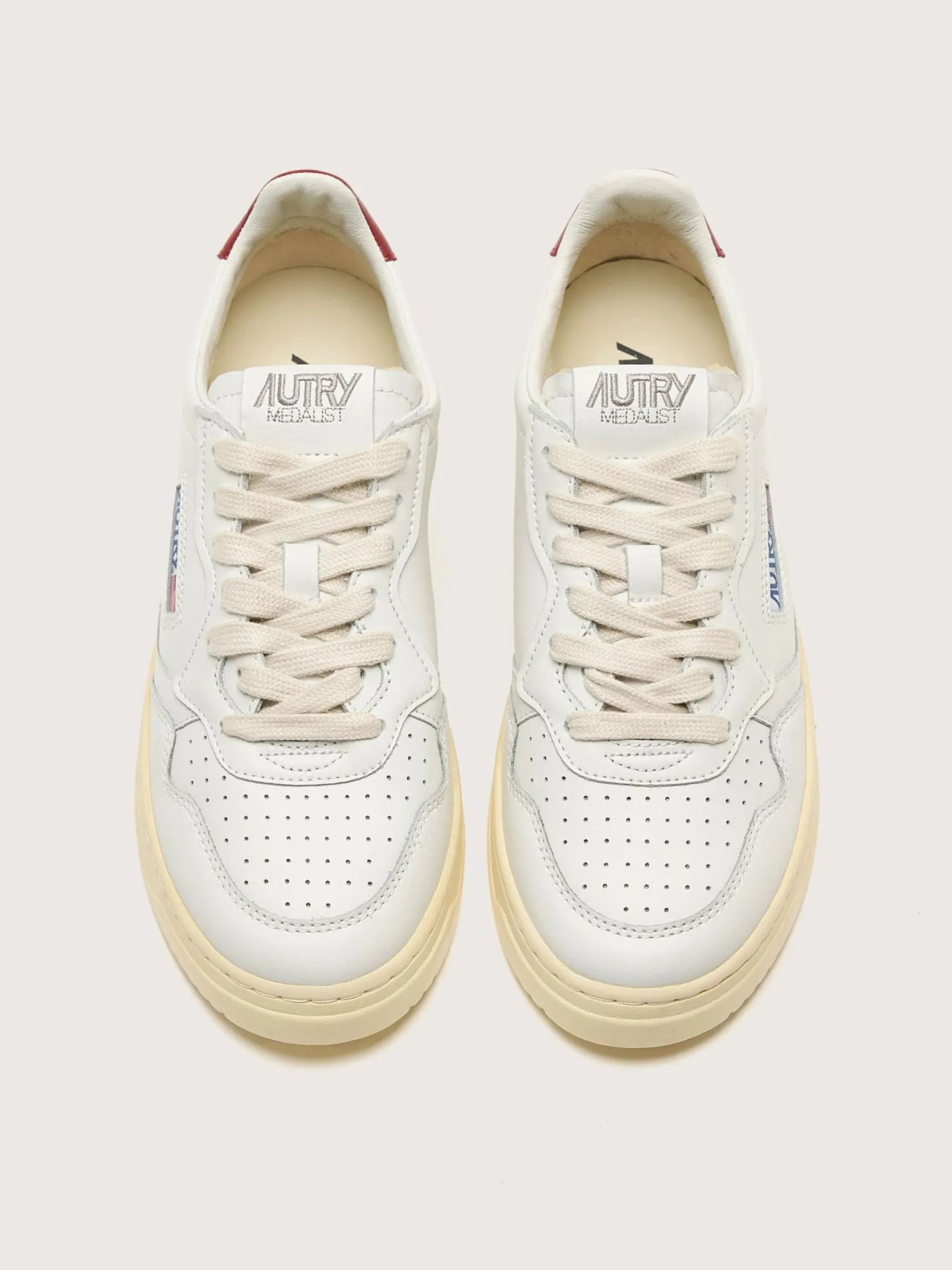 De Autry Medalist Low sneakers hebben een soepel wit lederen bovenwerk met zacht suède panelen, een geperforeerde neus en een gouden lederen hiellipje.