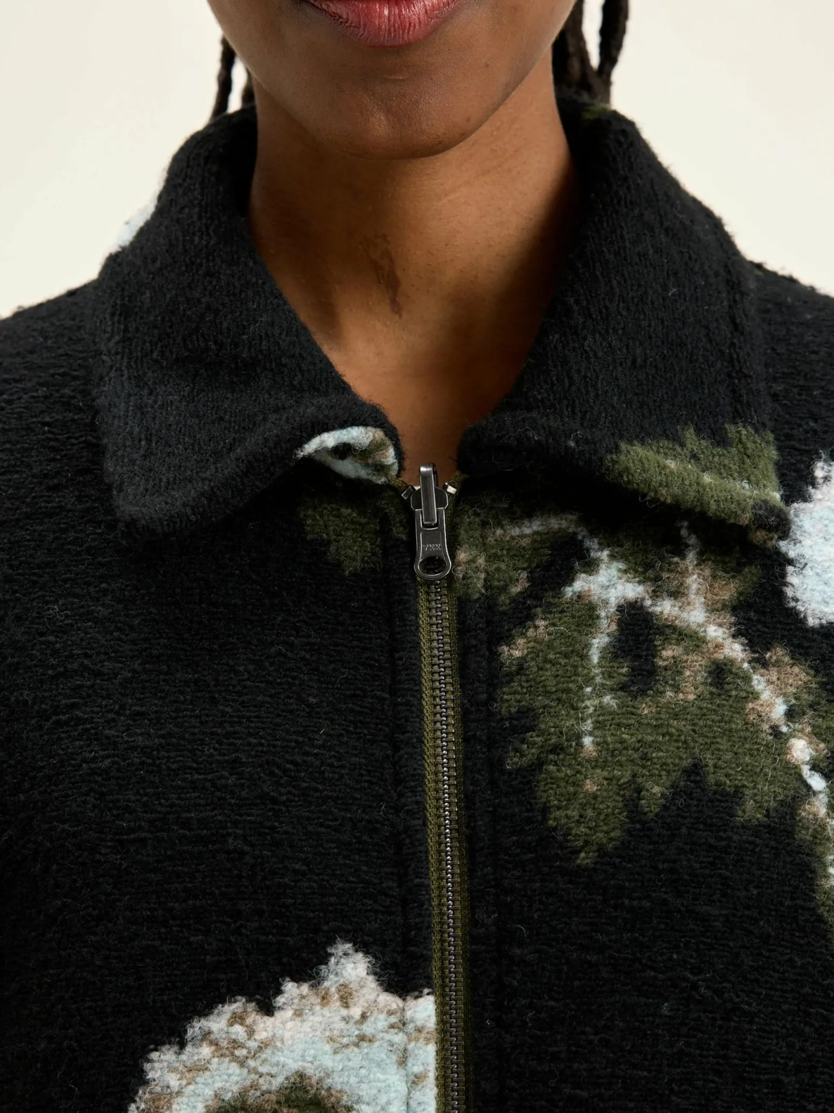 Sweatshirtjas in bomberstijl, van fleecestof met bloemenprint.