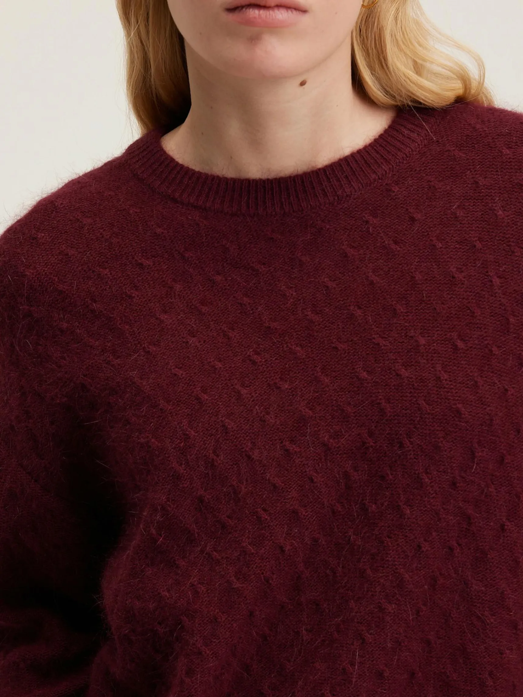 Cuberdonrode, relaxede trui met ronde hals, van angoramix.