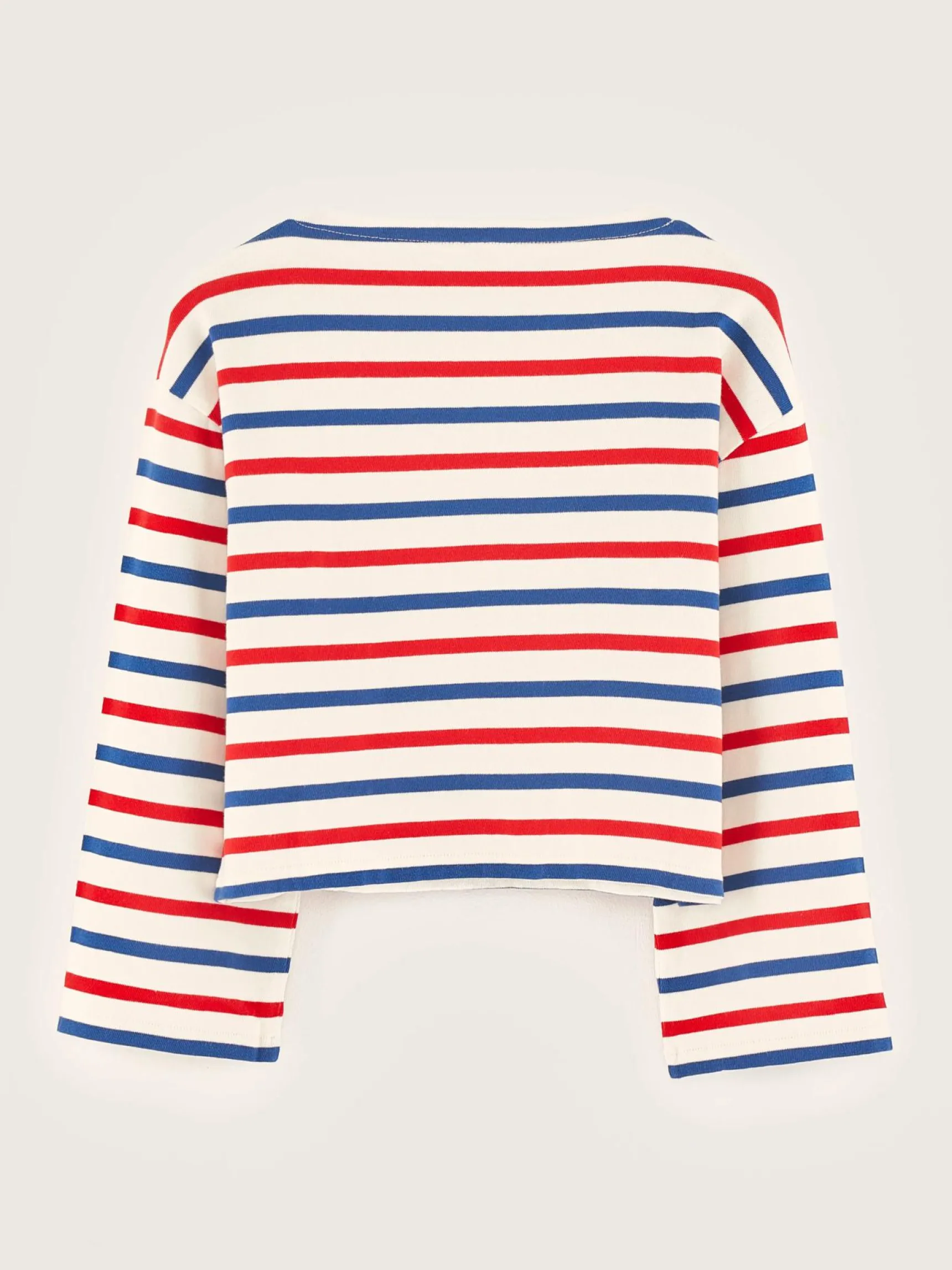 Katoenen T-shirt met lange mouwen en matrozenstrepen, straight fit.