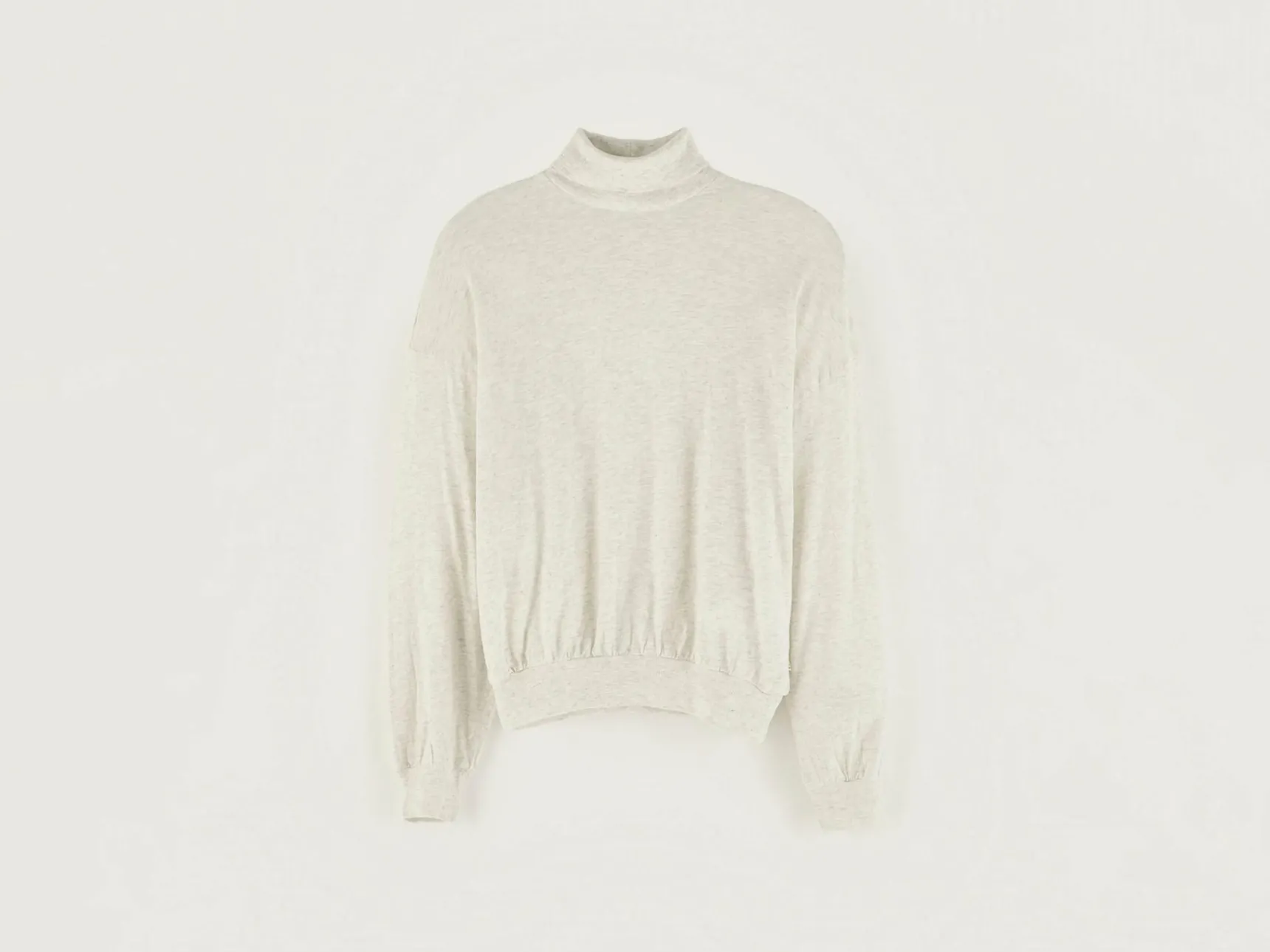 Oestergrijs, comfortabel T-shirt met lange mouwen en een rolkraag.