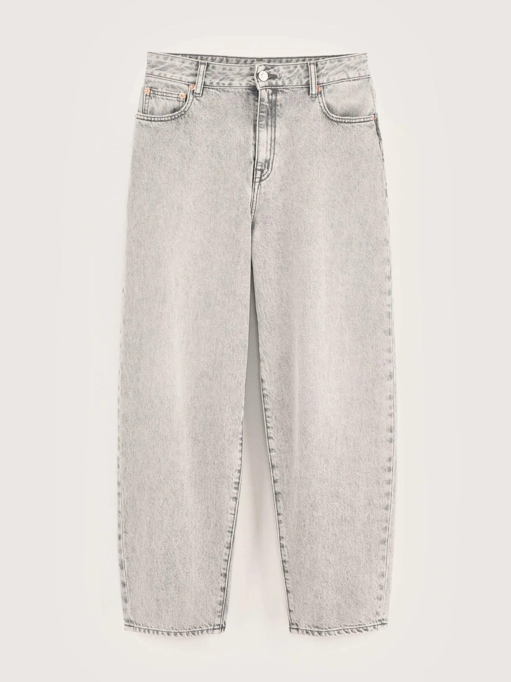 High-waist, mom jeans met pofpijpen van versleten grijs denim.