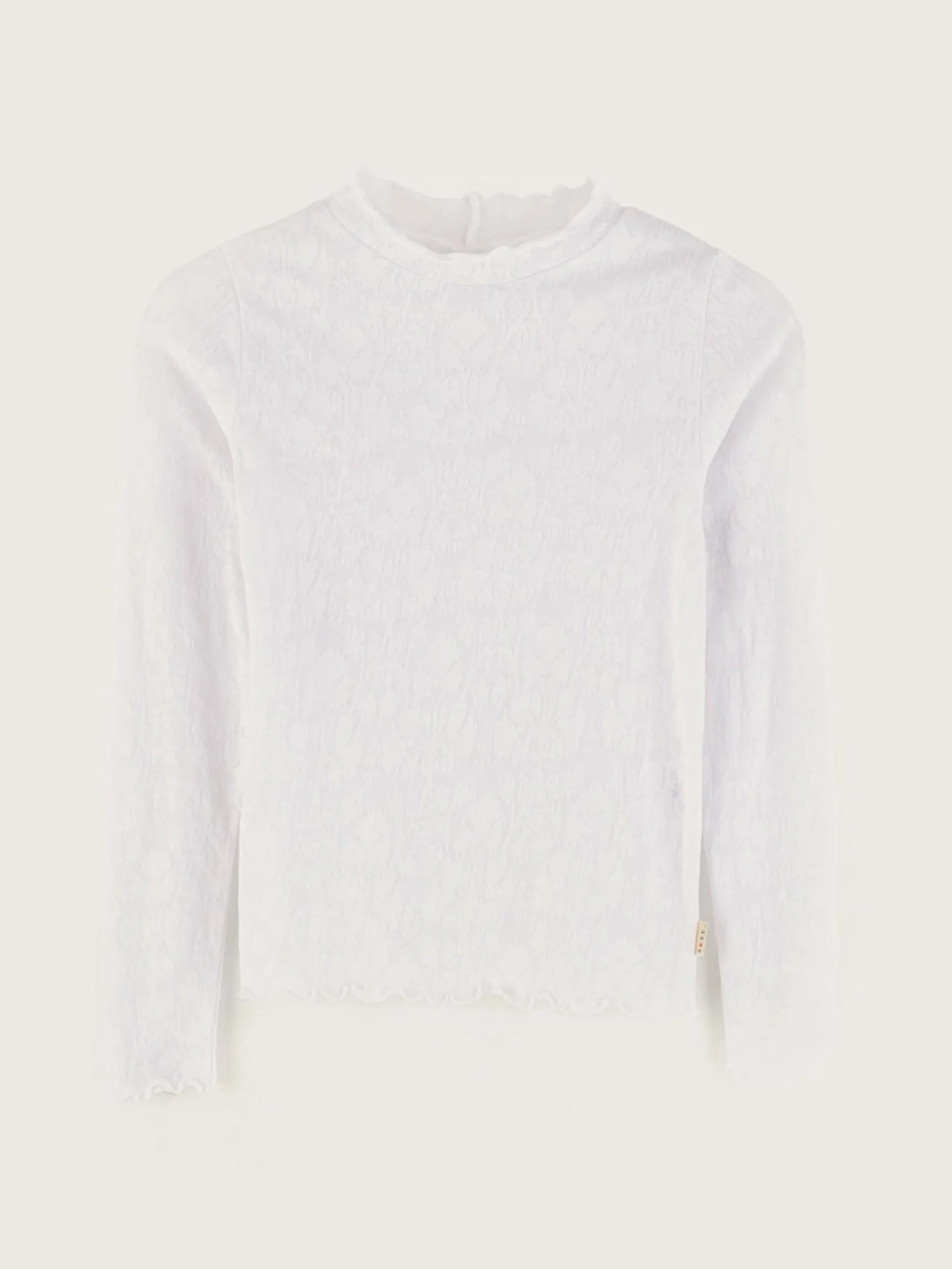 Wit, aansluitend T-shirt met lange mouwen en een ronde hals.