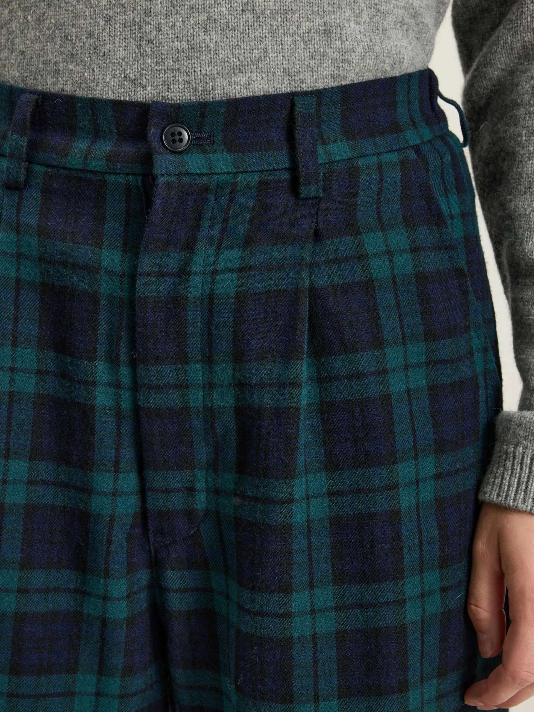 The Sarahwear Saxophonist pants, made from a wool-cotton blend, have a masculine silhouette with waist tucks and an elastic back waistband.