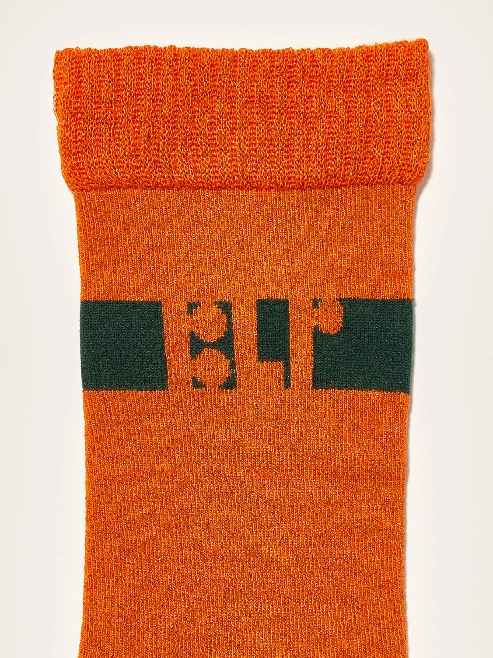 Klassieke oranje BLR-sokken met contrasterend logo op de enkel.
