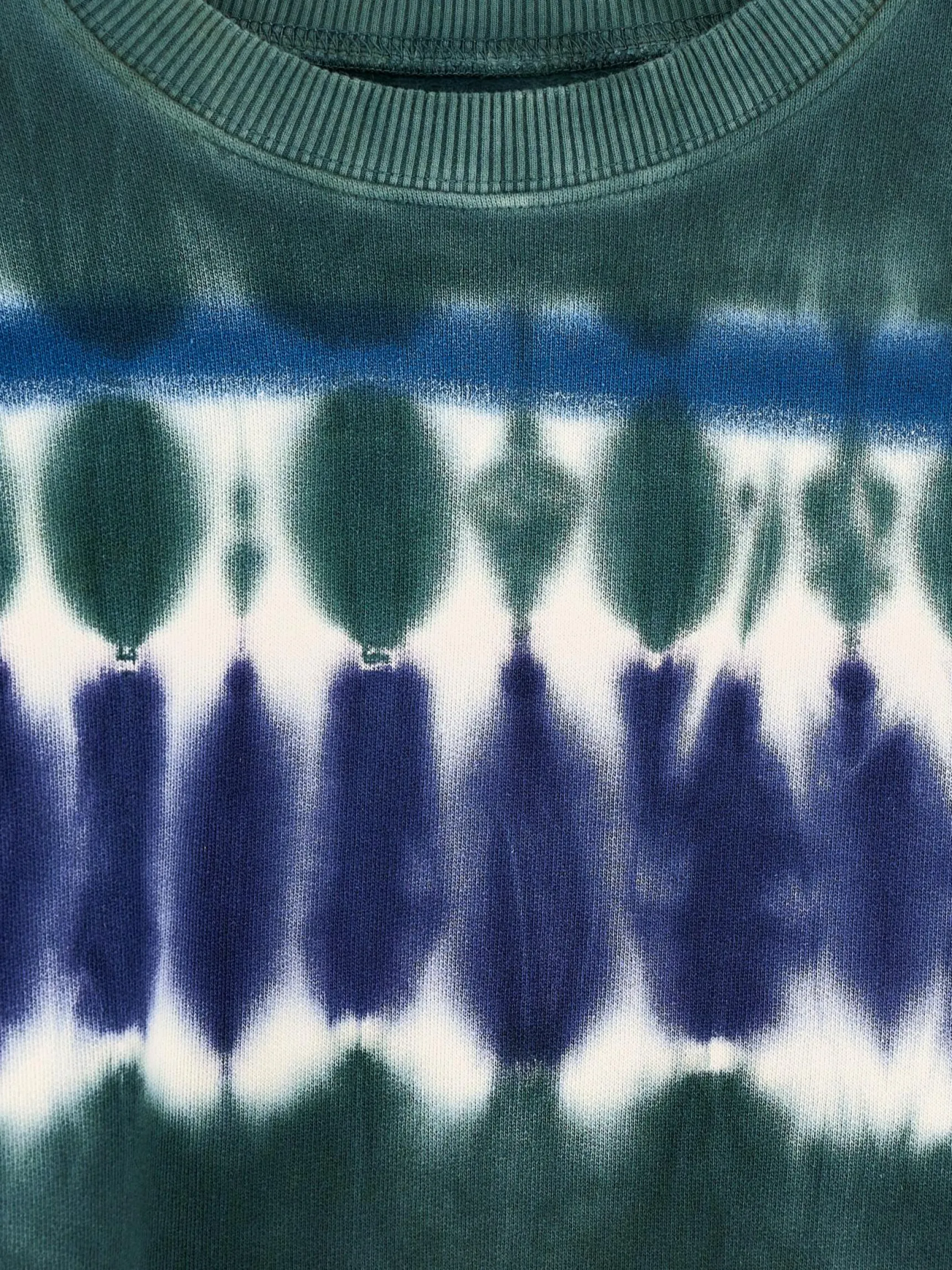Comfortabel sweatshirt van geborstelde fleece met blauwe en groene tie-dye print.