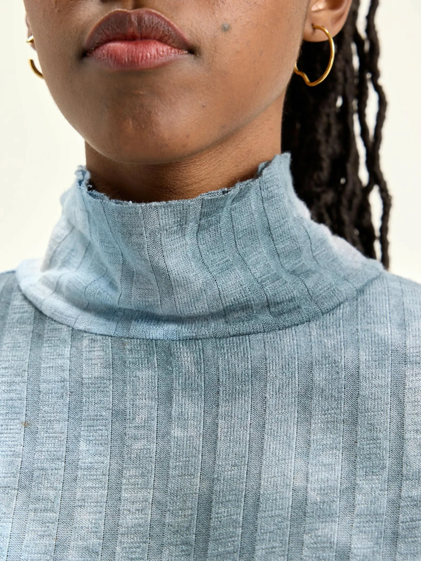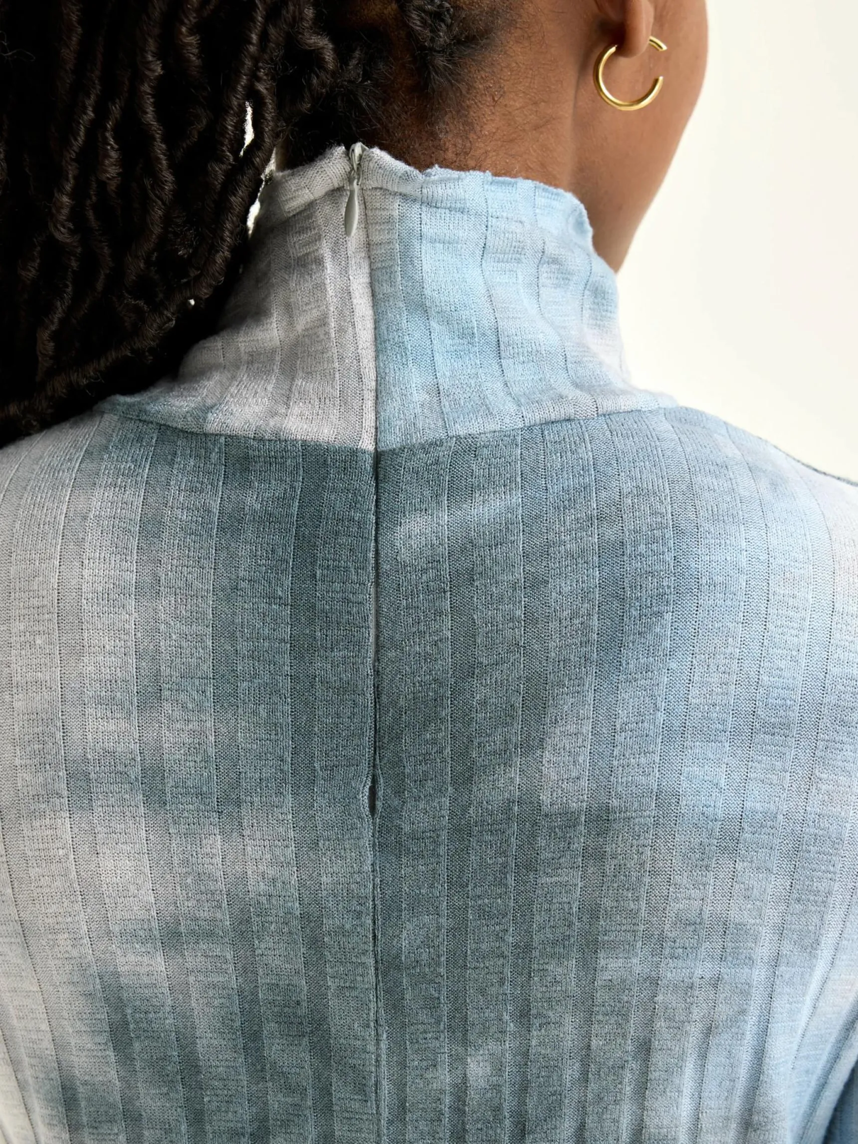 Aansluitend, ribgebreid T-shirt met opstaande kraag en tie-dye-effect.