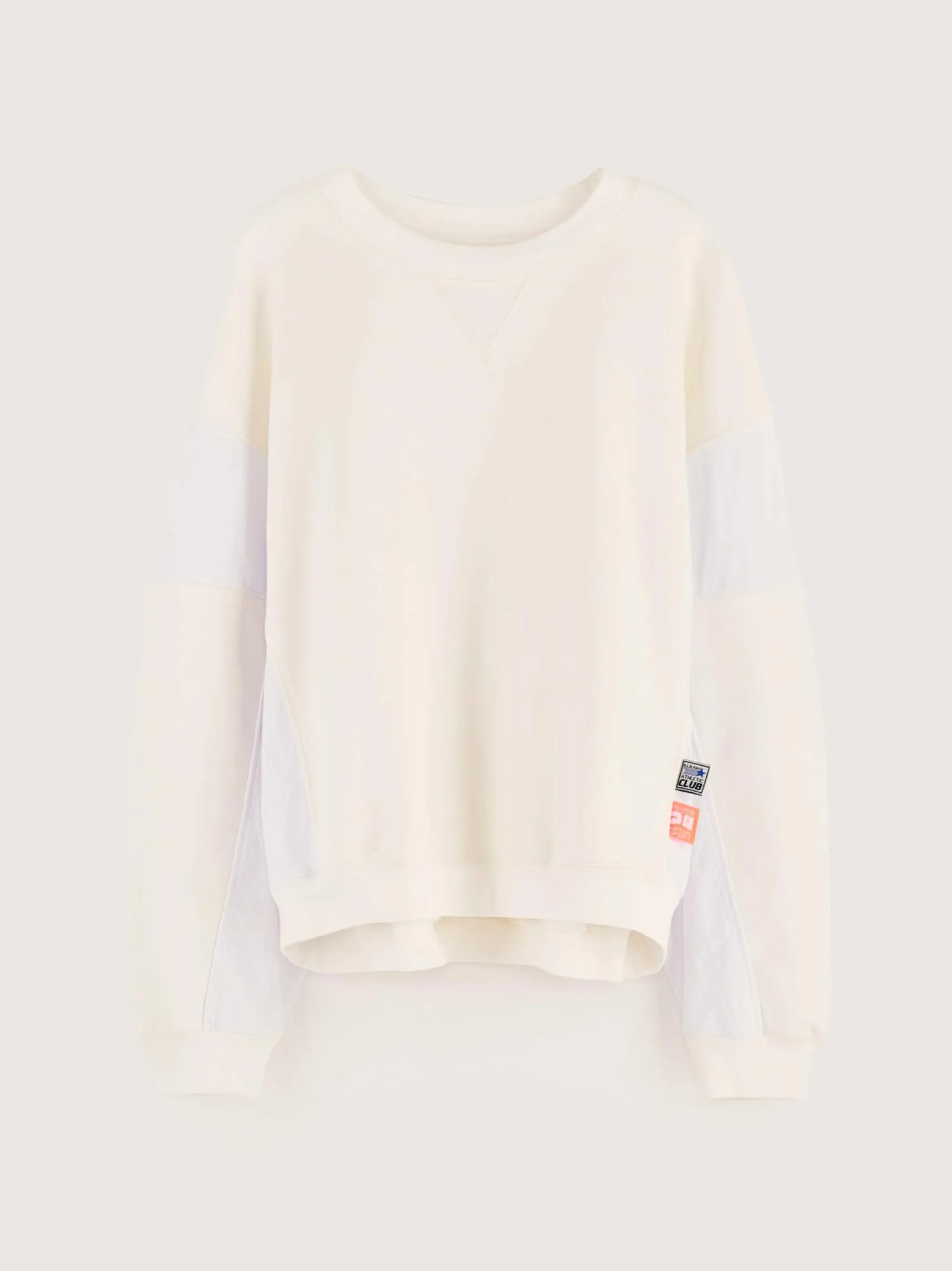 Vintagewit oversized sweatshirt met stroken van witte ripstop.