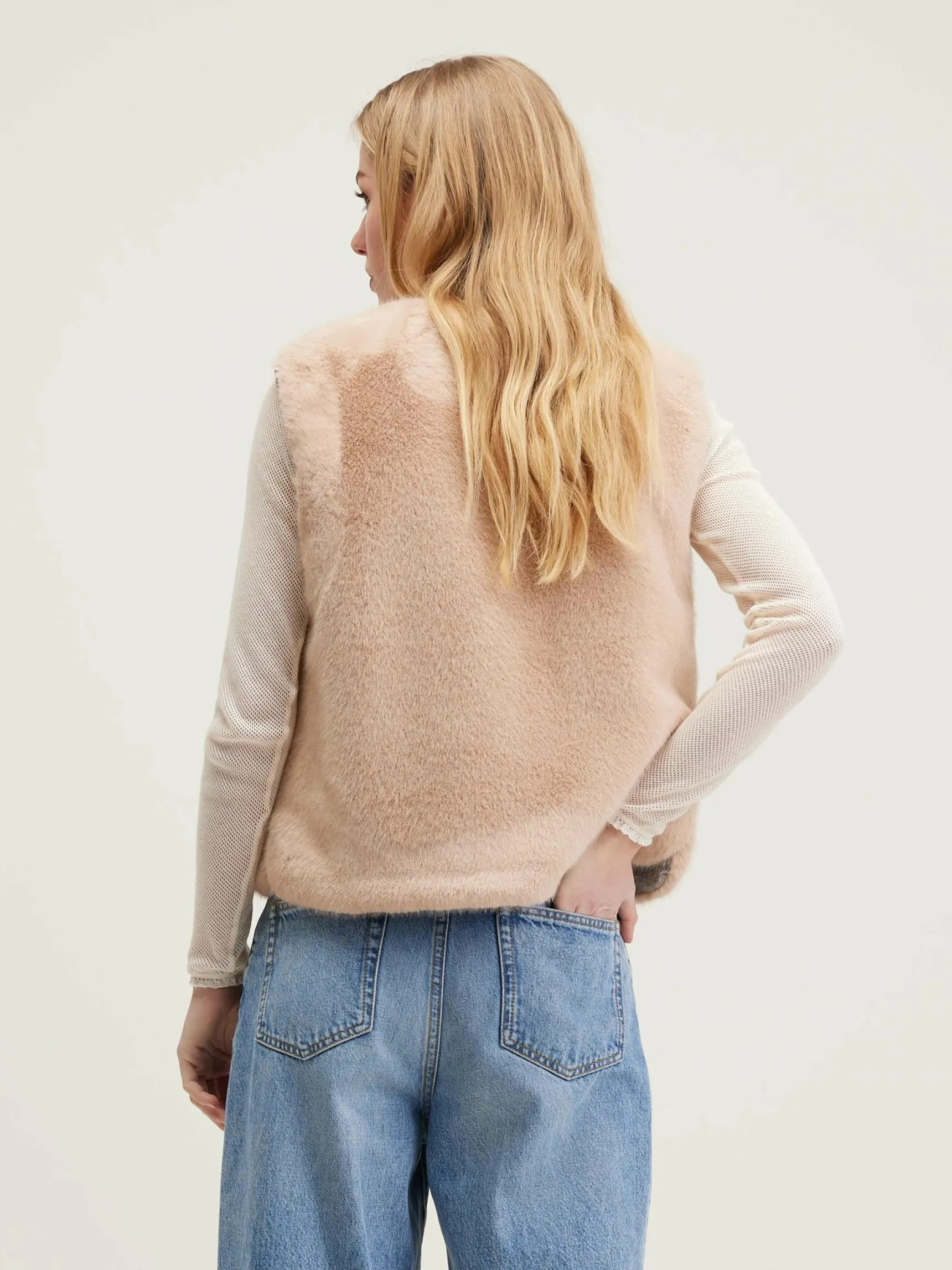 Omkeerbare bodywarmer van grijs flannel.