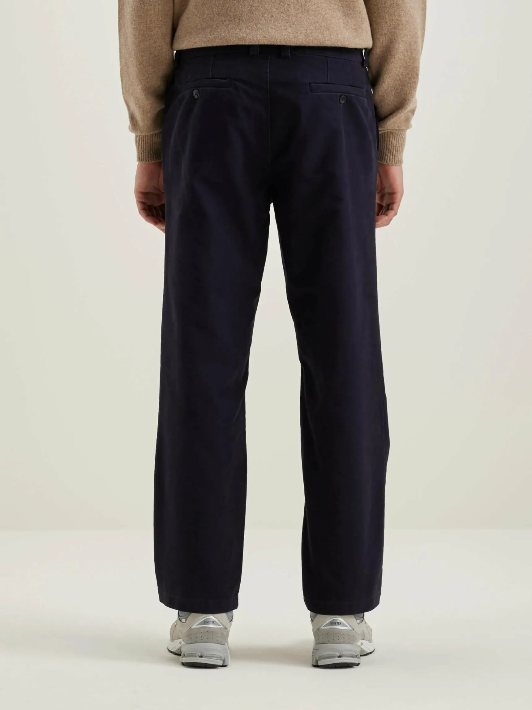 Minimalistische broek met een normale taille en rechte pijpen, van zwartblauw moleskin katoen.